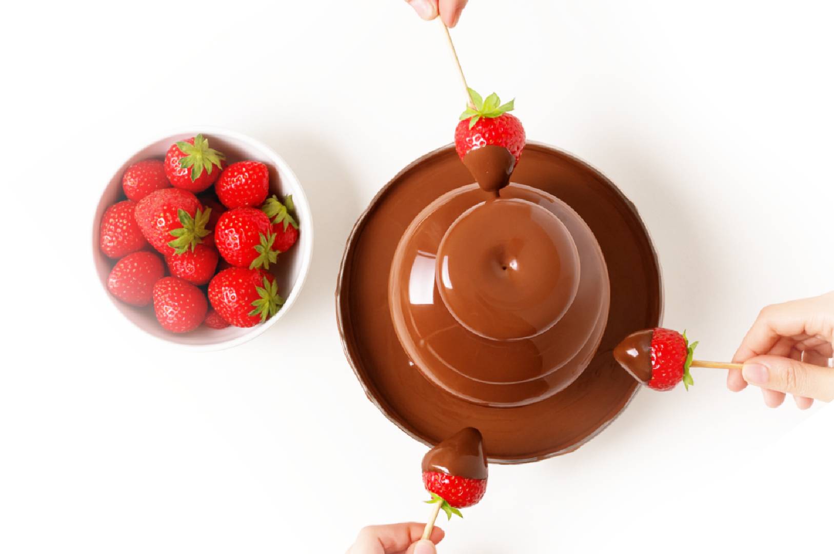 Podkategorie Čokoládové fontány zahrnuje zařízení, která dokáží proměnit každou akci v nezapomenutelný zážitek. Fontány slouží k servírování tekuté čokolády, ovocných omáček nebo sladkých polev, do kterých si hosté mohou namáčet ovoce, piškoty, marshmallows a další pochutiny.