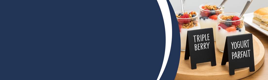 Kategorie Značení & menu zahrnuje vybavení, které usnadní hostům orientaci a zvýší profesionální vzhled bufetu či cateringu. Najdete zde menu tabulky, stojánky, držáky, cedulky k jídlům i popisovatelné tabule.
