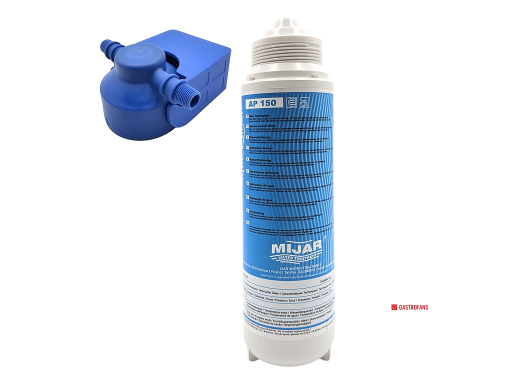 Sada pro úpravu tvrdé vody. Obsahuje filtrační kartuši AP 150, průtokovou hlavu a držák. Zajišťuje účinnou filtraci uhličitanů a dlouhodobě čistou, chuťově vyváženou vodu.