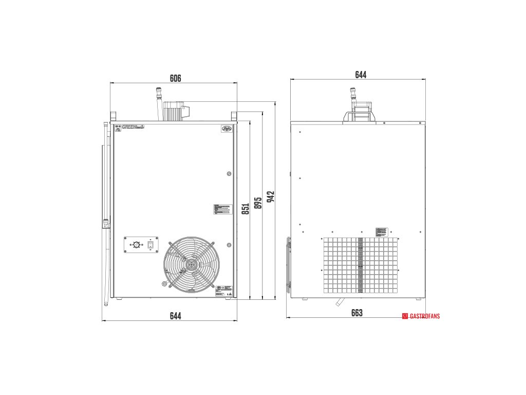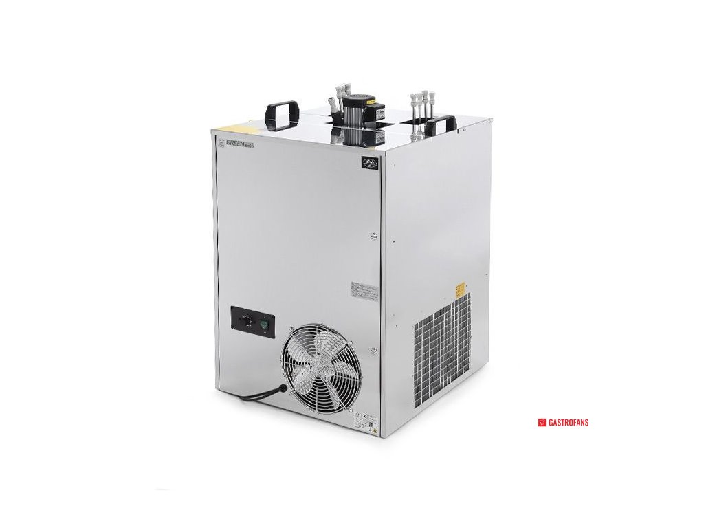 AS‑250 INOX Tropical 4× smyčka Green Line je výkonný podstolový vodní chladič s ledovou bankou, navržený pro profesionální použití v náročných podmínkách. S výkonem kompresoru 2300 W a 100litrovou nádrží poskytuje maximální chladicí výkon až 200 l/h, což umožňuje obsloužit až 4 nápoje současně. Díky zesílené izolaci 45 mm a konstrukci odolné až do 45 °C okolní teploty je ideální pro použití na letních festivalech, v horkých klimatických podmínkách nebo při vysoké výtoči.