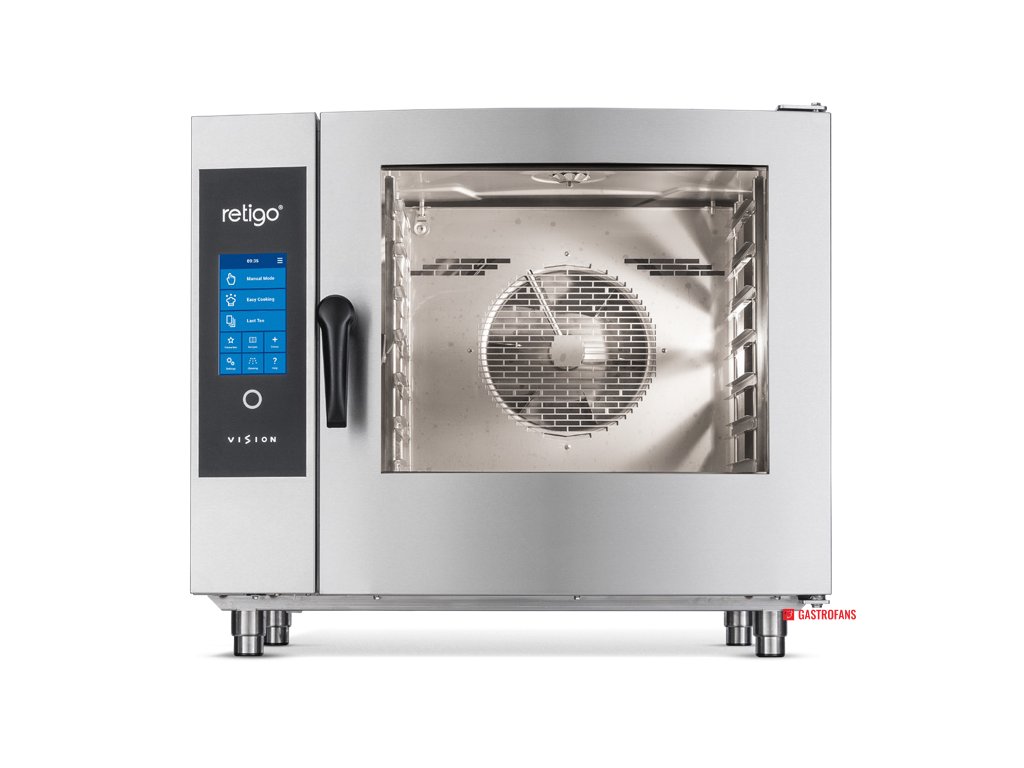 RETIGO Blue Vision 611 je jedním z nejoblíbenějších modelů této prémiové řady konvektomatů, ideální pro provozy s kapacitou 51–150 jídel denně. Nabízí kombinaci špičkového výkonu, intuitivního ovládání a vysoké míry automatizace. Díky 8" dotykovému displeji s funkcí MyVision je ovládání maximálně jednoduché a rychlé. Uživatel si může upravit hlavní obrazovku podle svých potřeb a ovládání funguje bezchybně i při ztížených podmínkách (mastné ruce, rukavice).