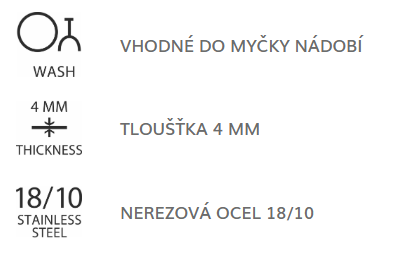 Proces PVD (Physical Vapor Deposition) spočívá v odpařování kovu ve vysokém vakuu. Současně se přidává reaktivní plyn, který vytváří směs skovovými parami a usazuje se ve formě ultratenké, pevně přiléhající vrstvy barvy na povrchu našich příborů. Příbory lze bez problémů mýt v myčce. - Vyrobeno z oceli 18/10 - Tloušťka 4 mm - Lze bezpečně mýt v myčce nádobí.