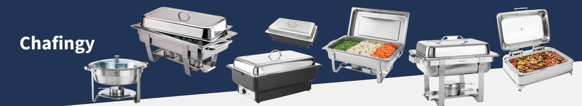 - Chafingy kulaté, obdélníkové a GN 1/1 – různé tvary a kapacity pro široké využití.