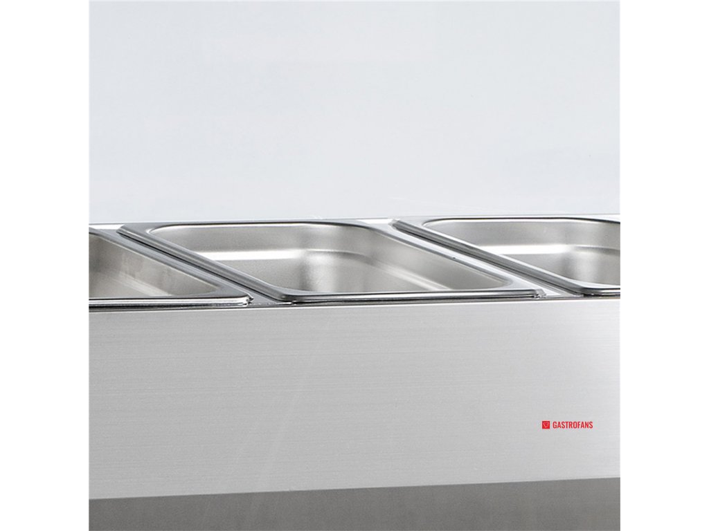 Model VK38-200 značky TEFCOLD je nejdelší varianta z řady chladicích nástaveb VK38, ideální pro profesionální gastroprovozy s vysokým nárokem na kapacitu chlazených surovin. Nabízí prostor až pro 9× GN 1/3 nebo kombinaci s GN 1/2 (nádoby nejsou součástí). Skleněné krytí chrání potraviny a zároveň zachovává snadný přístup při přípravě jídel.