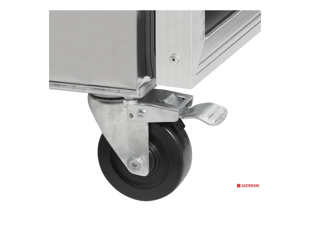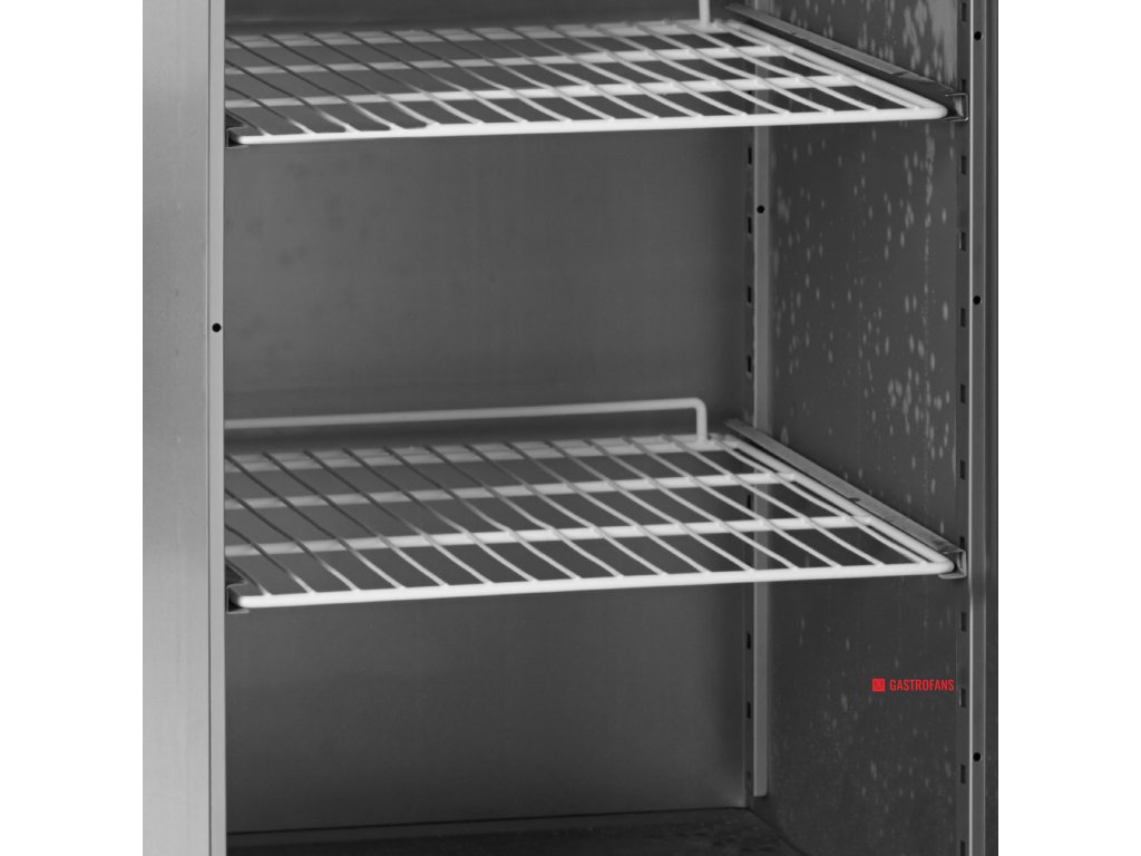 Skříň je vybavena plnými samozavíracími dveřmi s možností změny směru otevírání. Interiér osvětluje LED osvětlení a díky nastavitelným policím GN 1/1 lze prostor snadno přizpůsobit typu uložených surovin. Digitální termostat s přehledným teplotním displejem umožňuje přesné nastavení a kontrolu provozu. Skříň je navíc opatřena zámkem a odolnými kolečky s brzdou pro snadnou manipulaci.