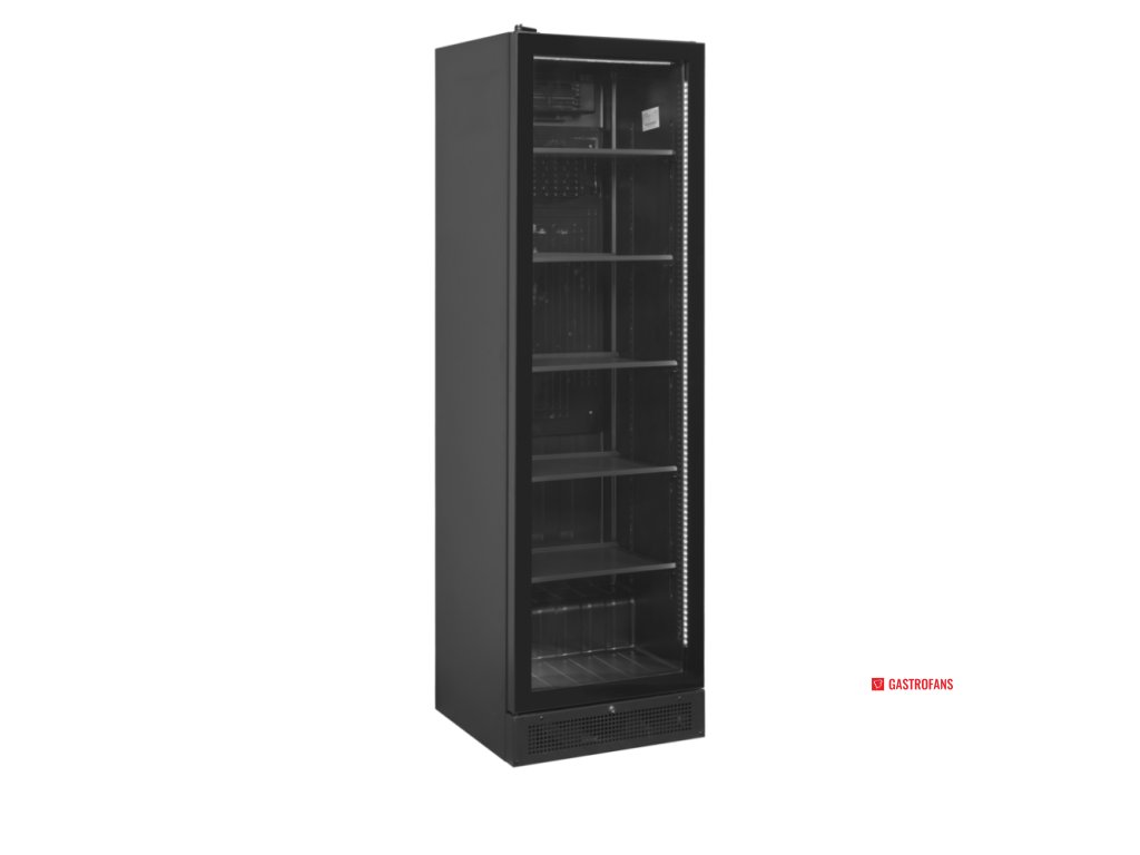 Chladicí skříň TEFCOLD SCU 1425 FRAMELESS L/H s bezrámovými prosklenými dveřmi – 347 l – černá