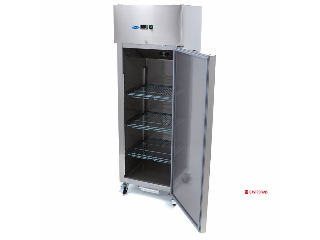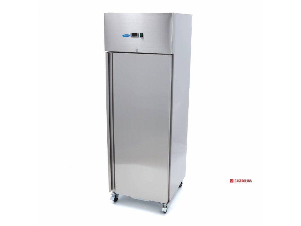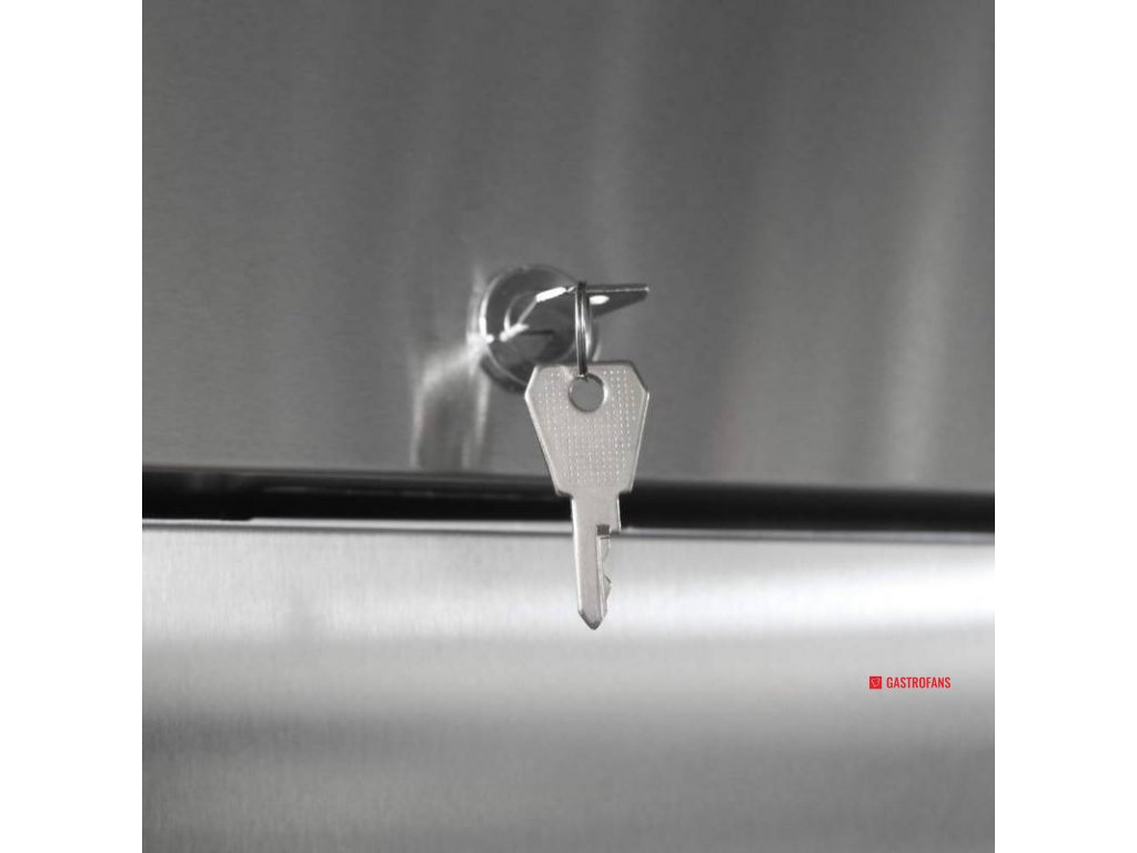 Tato profesionální chladnička má samozavírací dveře s antibakteriálním gumovým těsněním. Pro udržení čerstvosti a chlazení potravin se kuchyně v gastronomii neobejdou bez kvalitní chladničky. Tato luxusně zpracovaná chladnička má zámek se dvěma klíči. Uvnitř jsou zaoblené rohy, aby se na těžko čistitelných místech nemohly hromadit nečistoty. Police o rozměrech 53 x 55 cm jsou výškově nastavitelné a vhodné pro umístění zásobníků 1/1 GN