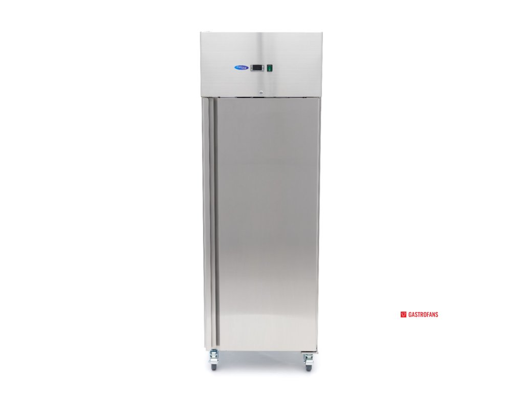 Tato chladnička je vybavena třemi robustními nastavitelnými policemi (55 x 53 cm), které jsou ideální pro uložení nejrůznějších surovin. Součástí samozavíracích dveří je antibakteriální gumové těsnění a zámek se dvěma klíči pro větší bezpečnost. Zaoblené vnitřní rohy zabraňují hromadění nečistot, takže údržba hygieny je snadná. Jednotka je namontována na čtyřech kolečkách, z toho dvou s brzdou, takže se snadno přemisťuje a je bezpečná, když je na svém místě. LED osvětlení zajišťuje jasný přehled o obsahu, jakmile se otevřou dveře.
