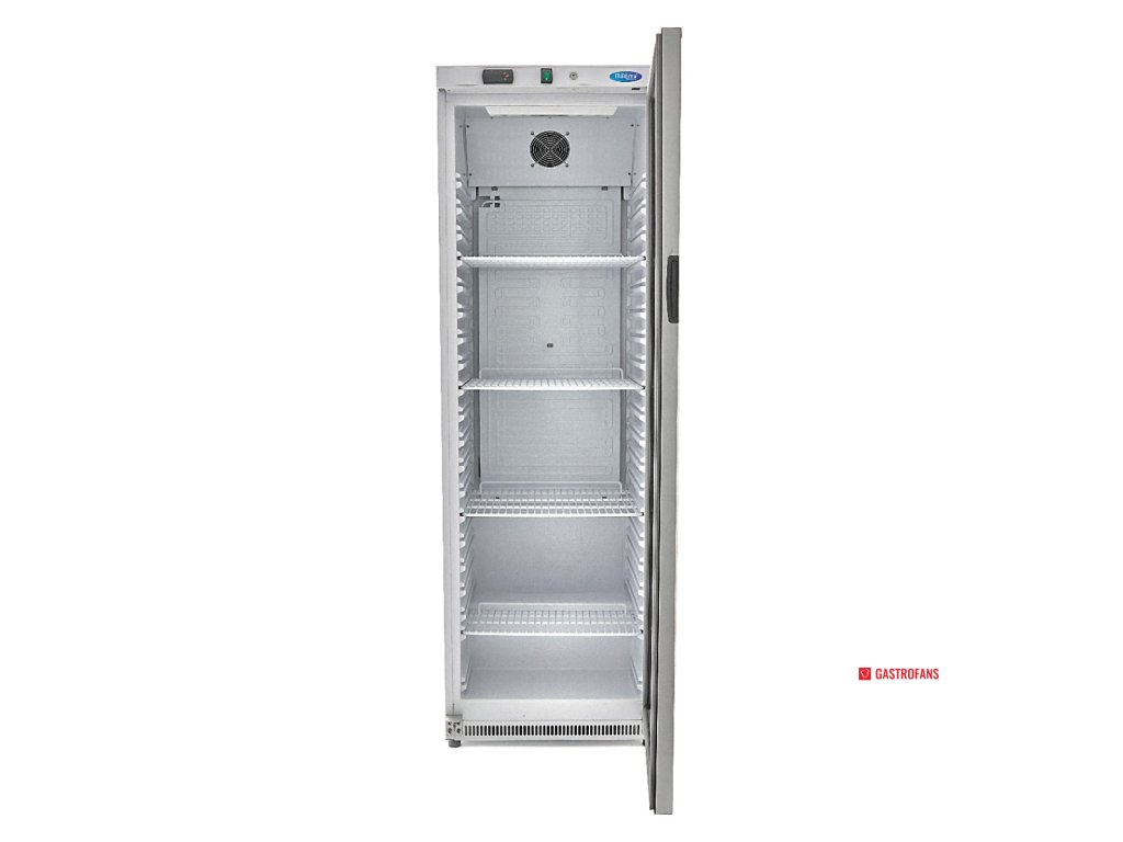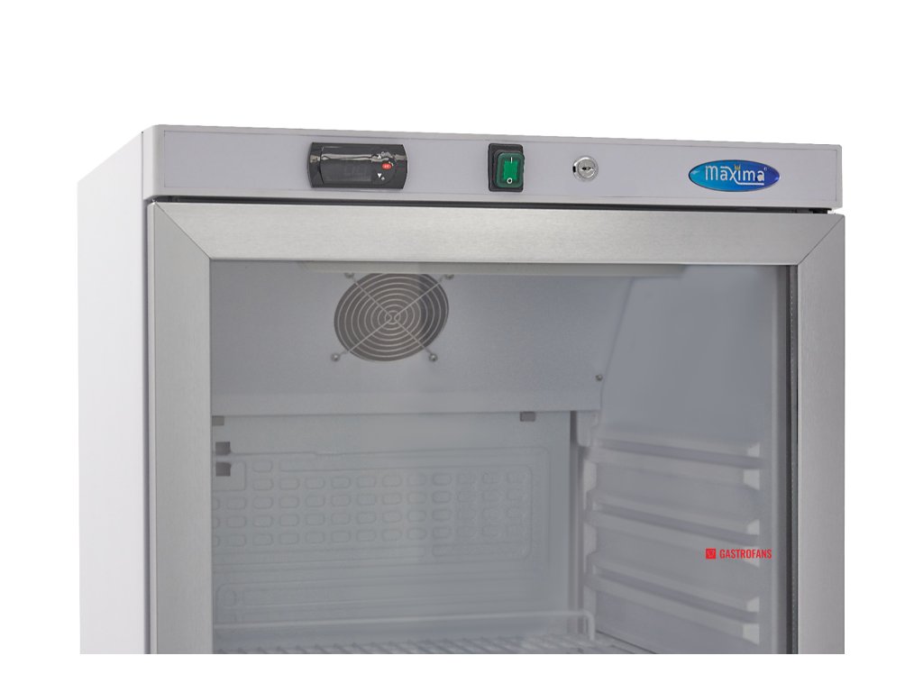 Profesionální bílá chladnička Maxima o objemu 400 l je navržena pro intenzivní každodenní provoz v gastro provozech, obchodech i barech. Skleněné dveře se zámkem umožňují přehled o obsahu bez nutnosti otevření, čímž přispívají k úspoře energie. Je vybavena čtyřmi výškově nastavitelnými policemi a nabízí flexibilní vnitřní uspořádání.