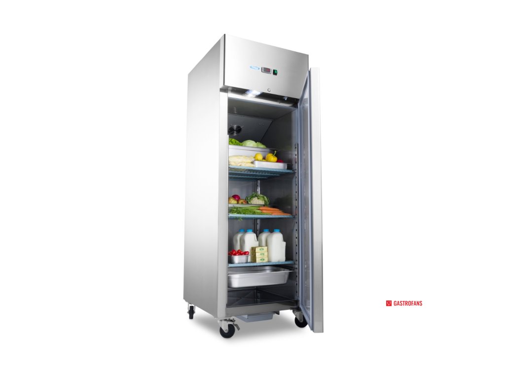 Tato chladnička o objemu 600 litrů je navržena pro spolehlivost, efektivitu a snadné použití v profesionálních potravinářských službách. Díky samozavíracím uzamykatelným dveřím, silné izolaci a intuitivnímu digitálnímu ovládacímu panelu zajišťuje tato chladnička přesné řízení teploty a optimální skladovací podmínky.