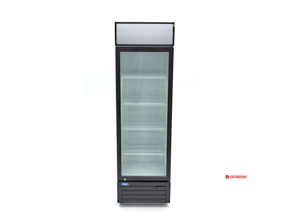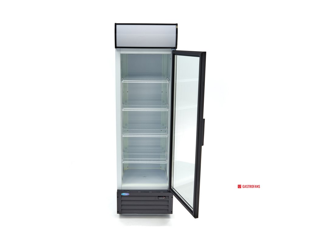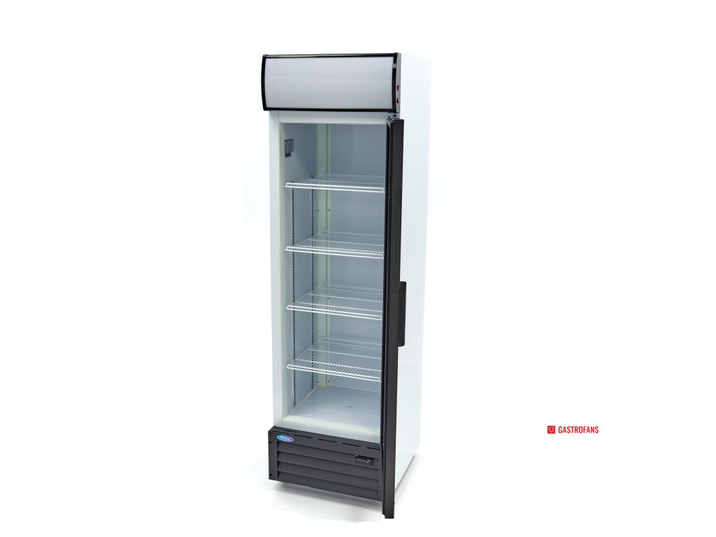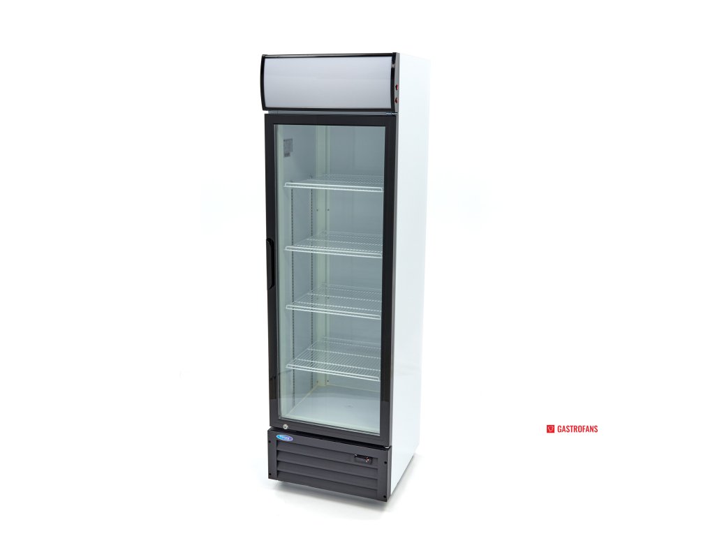 Tato chladnička na nápoje je ideální pro chladicí prezentaci a skladování lahví, plechovek a občerstvení všech velikostí. Díky dveřím s dvojitým sklem a vestavěnému LED osvětlení hosté okamžitě uvidí, jaké produkty nabízíte. Pro atraktivní propagaci výrobků můžete využít propagační panel v horní části chladničky na plechovky, který je rovněž vybaven podsvícením. Dveře jsou navíc vybaveny zámkem a dodávají se k nim dva klíče.