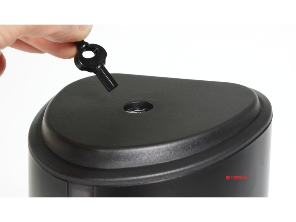 Dávkovač DROP Gel je vybaven nádobkou pro mýdlo či dezinfekci o objemu 850 ml. Gelová náplň se do dávkovače dolévá širokým hrdlem. Můžete použít gelové mýdlo či dezinfekci od libovolného výrobce. Proti neautorizované manipulaci je dávkovač zajištěn servisním klíčem.