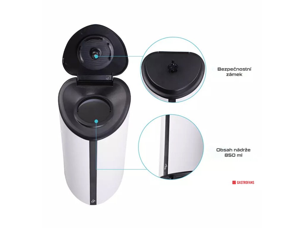 Automatický dávkovač funguje zcela bezkontaktně. Dávka gelové dezinfekce či mýdla je vydána po přiložení rukou pod dávkovač. Díky bezkontaktnímu provozu nedochází ke kontaminaci bakteriemi a viry.