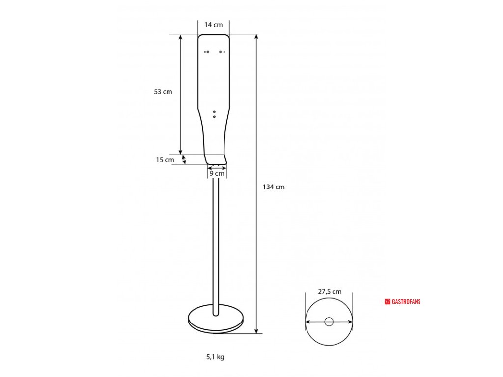 Stojan je určený pro dávkovače gelové a tekuté dezinfekce Donner. Po vyvrtání nových otvorů však může posloužit i jako univerzální stojan pro jakýkoliv dávkovač dezinfekce.