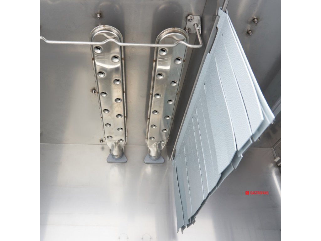 Čištění myčky je jednoduché – díky nerezové konstrukci odolné vůči korozi i běžnému opotřebení. Myčku dodáváme s přívodní a vypouštěcí hadicí. Vypouštění probíhá přirozeným způsobem bez čerpadla. Oplachová a mýdlová pumpa nejsou součástí dodávky.