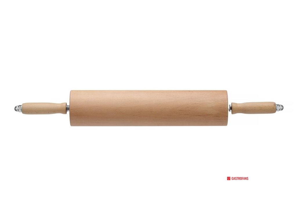 Vyrobeno z masivního bukového dřeva. S hladce pracujícími poniklovanými ocelovými kuličkovými ložisky. Ergonomické, tvarované rukojeti. Robustní kovová hřídel uvnitř zpevňuje konstrukci válečku. Váleček s kódem 515020 je díky své velikosti a hmotnosti vhodný pro válení velkého množství těsta najednou. Nelze mýt v myčce nádobí.