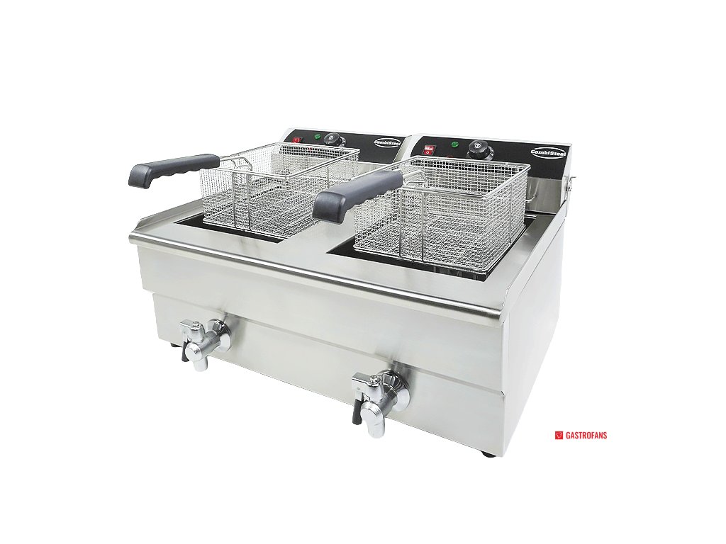 Elektrická stolní fritéza od značky Combisteel je ideálním řešením pro profesionální kuchyně, které vyžadují rychlé a efektivní smažení. Díky velkému objemu 2x10 litrů je vhodná pro přípravu většího množství pokrmů najednou.