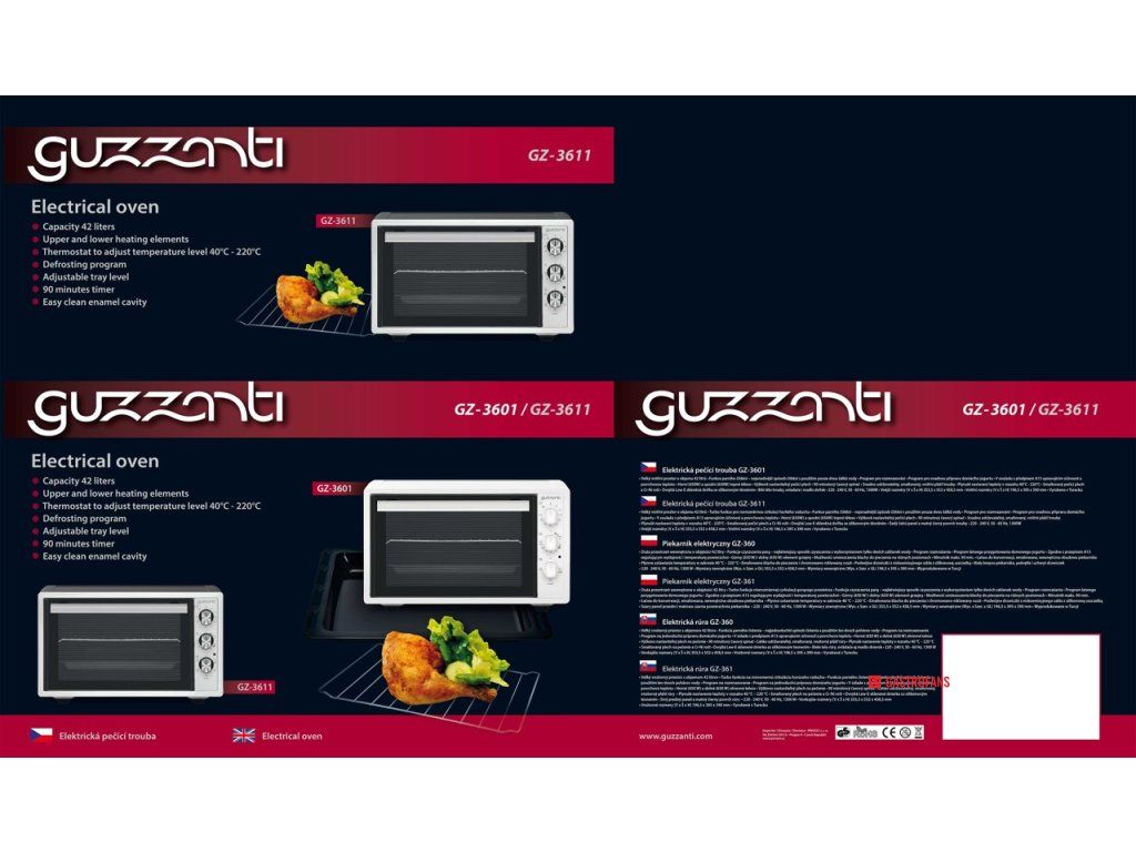 Elektrická mini trouba Guzzanti GZ 3611 v elegantním černém provedení je ideální volbou do menších kuchyní, kanceláří nebo na chalupu. Díky objemu 42 litrů a výkonu 650 W zvládne připravit i větší pokrmy, a to rychle a efektivně. Nabízí širokou škálu funkcí včetně parního čištění, rozmrazování a dokonce i programu pro přípravu domácího jogurtu.