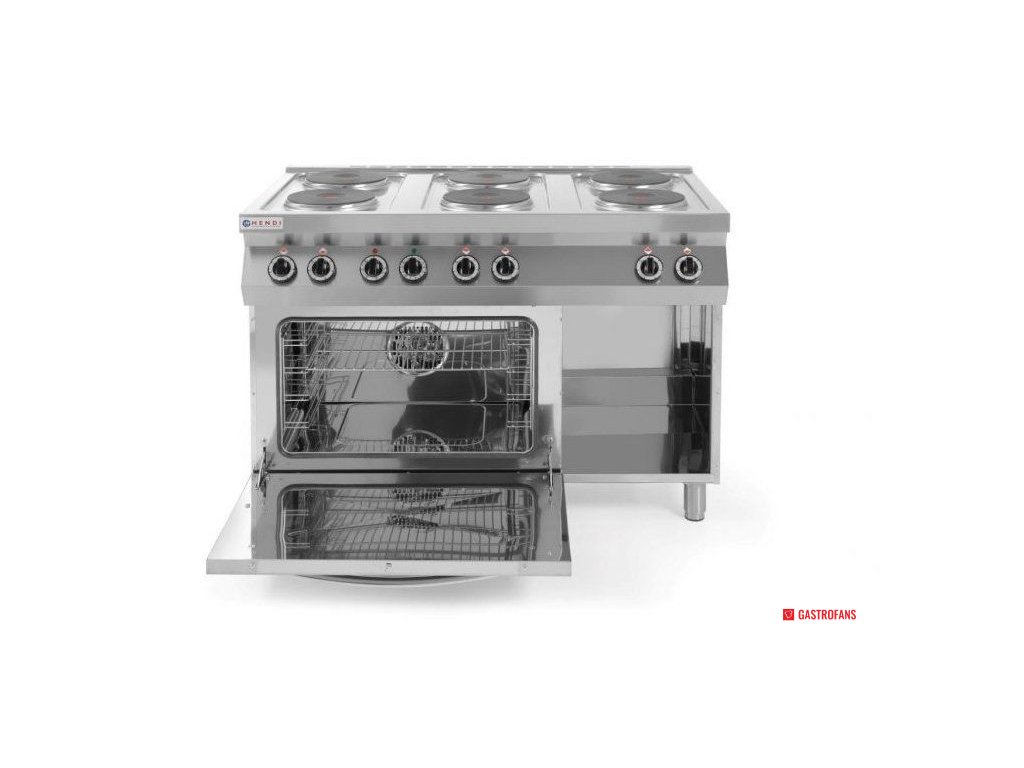Elektrický vařič Kitchen Line – 6 plotýnek s konvektomatem GN 1/1, Elektrický sporák 6 plotýnkový s konvektomatem