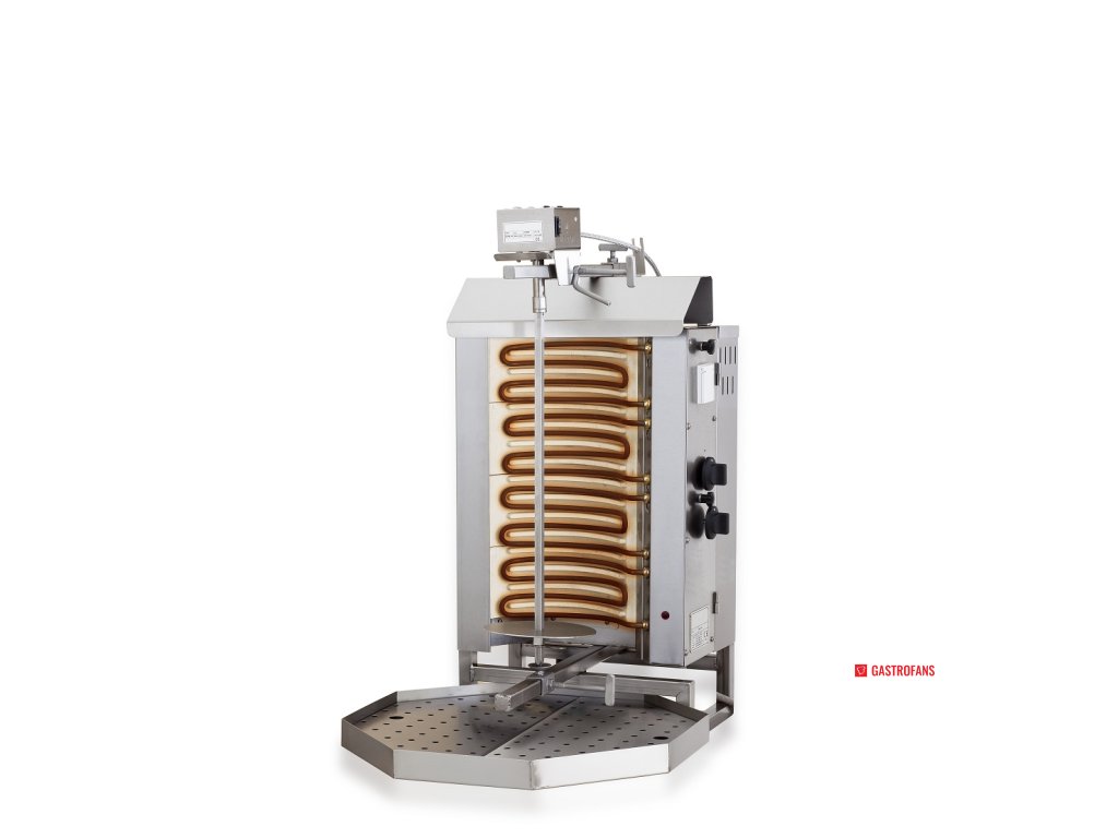 Elektrický gyros gril je ideální pro profesionální kuchyně, které vyžadují efektivní a rovnoměrné opékání masa. Díky motoru umístěnému nahoře a čtyřem topným zónám zajišťuje tento gril perfektní výsledky.