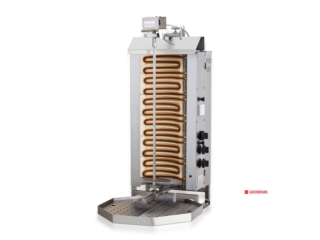 Elektrický gyros gril s motorem umístěným nahoře je ideální volbou pro profesionální kuchyně, které vyžadují efektivní a rovnoměrné grilování. Díky šesti topným zónám zajišťuje tento gril dokonalou přípravu masa.