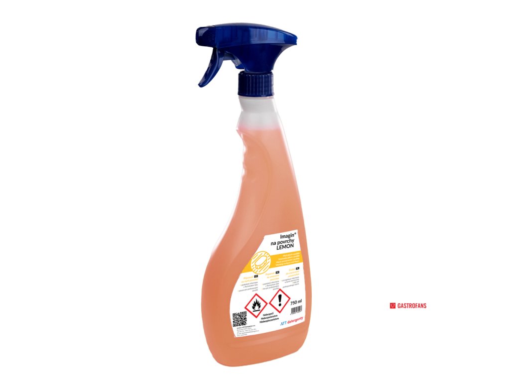 Imagin® na povrchy LEMON je bezoplachový čistící prostředek na alkoholové bázi, ideální pro každodenní mytí omyvatelných povrchů a zařízení odolných alkoholům. Účinně odstraňuje mastné filmy a usazeniny, zejména z kuchyňského nábytku, sklokermických desek nebo obkladů. Neobsahuje abraziva, a proto nepoškrábe skleněné povrchy. Zanechává příjemnou citrusovou vůni, avšak není vhodný pro dřevěné a lakované povrchy. Díky svému složení je bezpečný pro plochy přicházející do styku s potravinami.