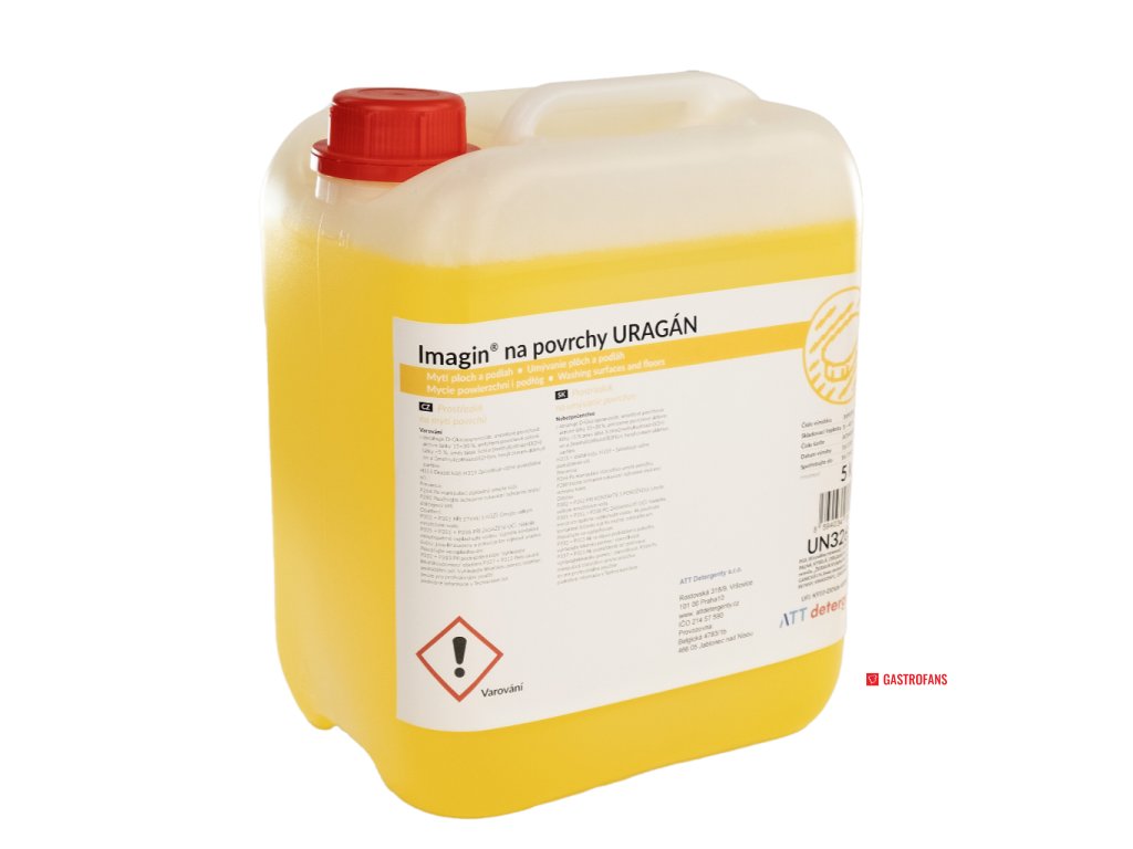 Imagin® na povrchy URAGÁN je kyselý čisticí prostředek s odmašťovací schopností a příjemnou vůní, určený pro každodenní mytí a čištění povrchů v kuchyních a koupelnách. Díky obsahu účinných kyselých látek efektivně odstraňuje vápenaté usazeniny, mastnotu a rez.