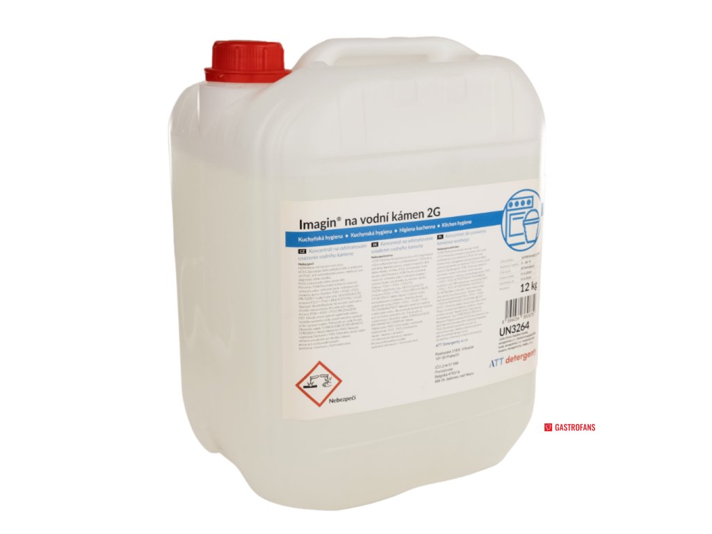 Imagin® na vodní kámen 2G je vysoce koncentrovaný kyselý prostředek určený k razantnímu odstraňování vápenatých usazenin z kuchyňského zařízení, jako jsou myčky nádobí, kávovary nebo pračky.
