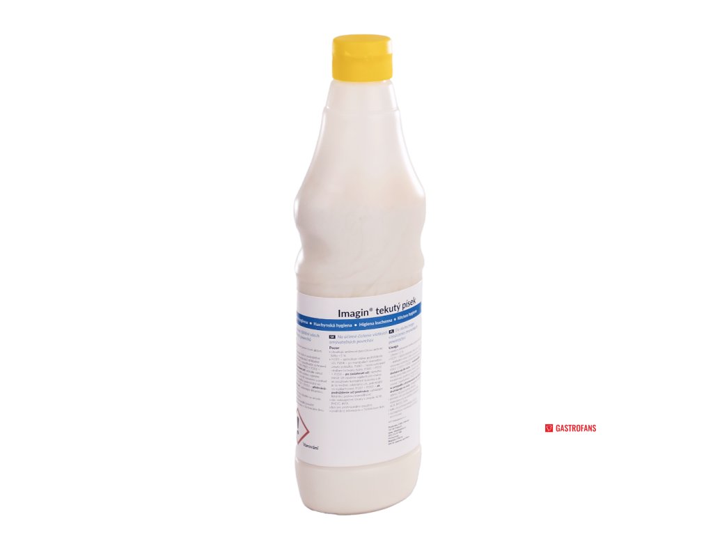 Imagin® tekutý písek je profesionální tekutý čisticí prostředek s jemným abrazivem, určený pro efektivní, ale šetrné čištění omyvatelných povrchů. Perfektně si poradí s běžnými i odolnějšími nečistotami na nerezovém nádobí, sklokeramických deskách, smaltovaných či glazovaných površích a sanitárním vybavení.