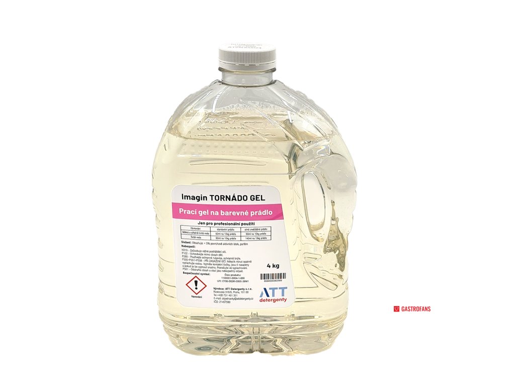 Imagin Tornádo prací gel je profesionální tekutý prací prostředek určený pro automatické praní barevného prádla. Jeho šetrná receptura chrání barvy a strukturu textilu, zatímco účinně odstraňuje nečistoty i při nízkých teplotách – ideální volba pro provozy, kde je klíčová účinnost i ohleduplnost k materiálům.