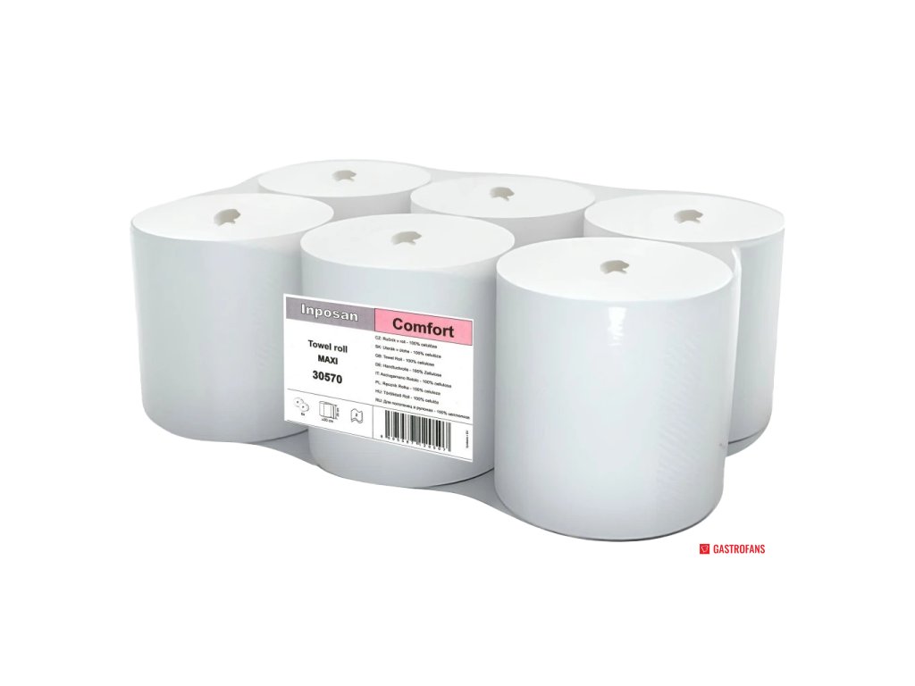 Towel Roll Comfort MAXI bez dutinky je 2vrstvý papírový ručník ideální pro profesionální prostředí. Díky absenci dutinky se snižuje množství odpadu, což je ekologické a praktické řešení. Ručníky se snadno umisťují do zásobníků s vnitřním odvíjením nebo univerzálních držáků, kde zajišťují hygienické a efektivní dávkování. Materiál ze 100% celulózy nabízí vysokou savost a pevnost, což je ideální pro provozovny a pracovní zázemí. Délka role 140 m zaručuje dlouhou výdrž při častém používání.