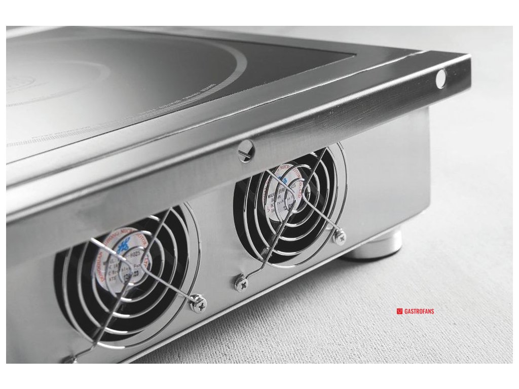 Chlazení je zajištěno pomocí dvojitého ventilátoru a snadno čistitelného tukového filtru, který chrání vnitřní komponenty a prodlužuje jejich životnost. Sporák je vhodný pro nádobí s průměrem dna 140–280 mm.