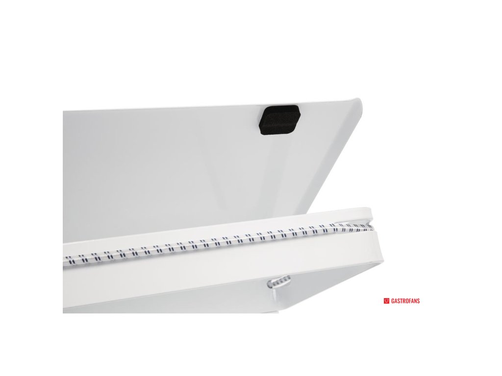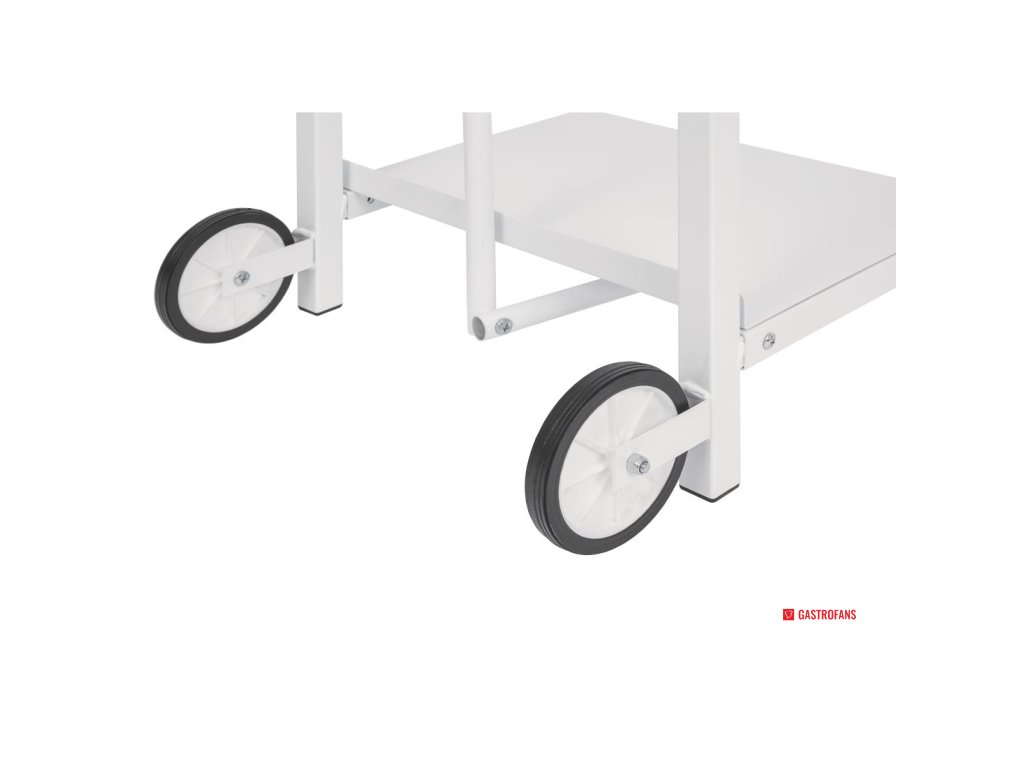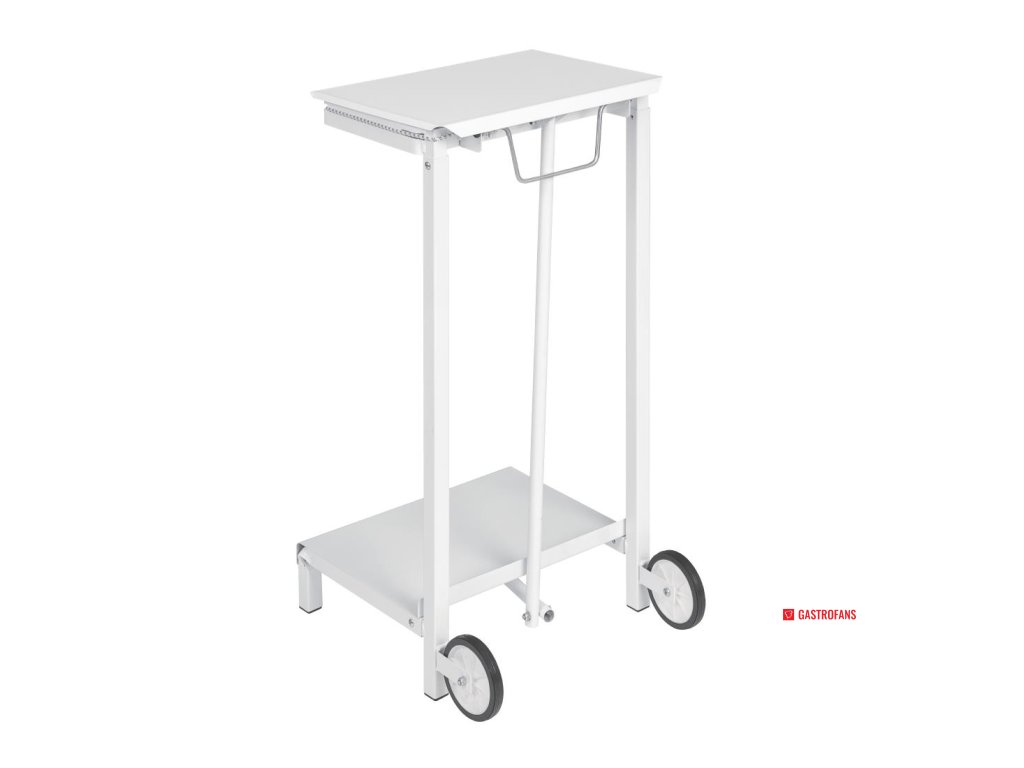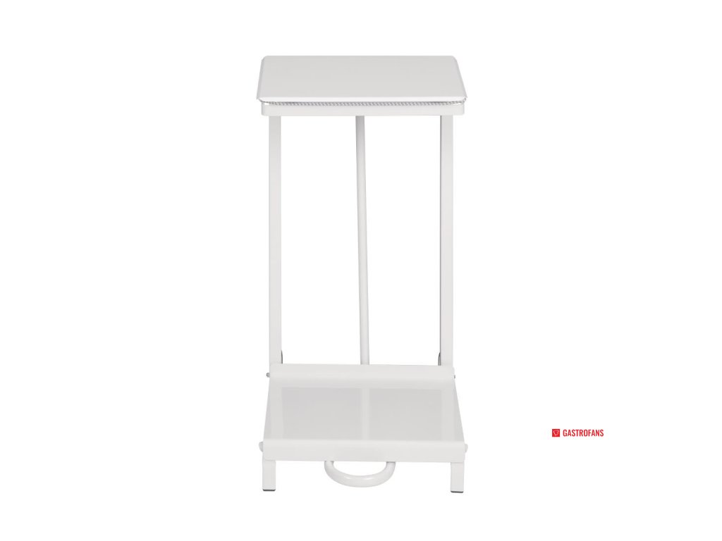 Dvě kolečka vzadu pro snadný pohyb. Víko ovládané pedálem. Povrchová úprava z bílé lakované oceli.Doplňkové parametry