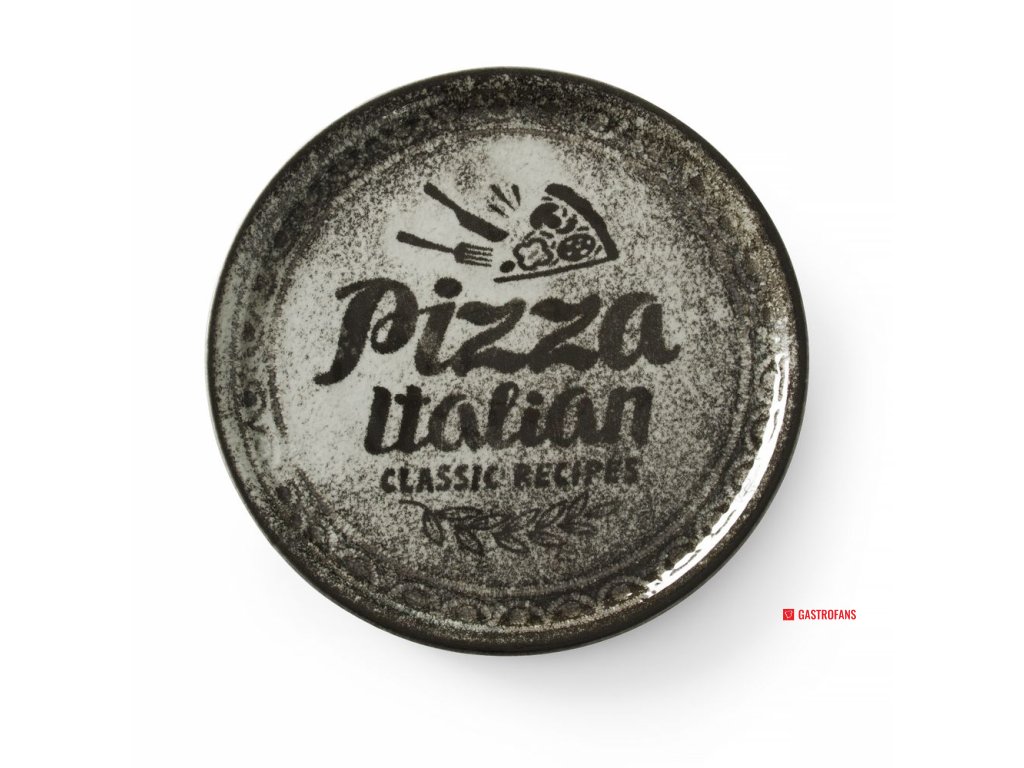Talíř je zdobený speciálním vzorem s textem a ilustrací pizzy na černém pozadí, který dodá vašemu podniku nebo domácí kuchyni šmrnc.