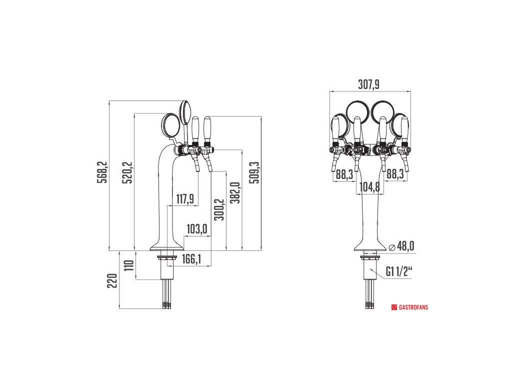 Kovová pípa/ stojan 4xkoh.chrom | 4 kohouty LINDR
