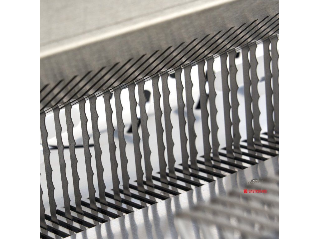 Tento Nářezový stroj na chléb je vyroben z oceli s povrchovou úpravou, je odolný a je určen ke krájení různých druhů chleba. Naše Nářezový stroje chleba jsou k dispozici s různými tloušťkami chleba. Tento strojek má vroubkované čepele z nerezové oceli vzdálené od sebe 11 mm. Jednoduchá obsluha Tento Nářezový stroj chleba se jednoduše používá. Nejprve stroj zapněte pomocí tlačítka Zapnout. Chcete-li nastavit velikost tloušťky podávaného chleba, nejprve vložte chléb do přístroje. Poté zatáhněte za páčku směrem k sobě, abyste chléb do strojku zasunuli. V horní části strojku se nachází přítlačná deska. Tato přítlačná deska se automaticky výškově nastaví tak, aby odpovídala výšce chleba. Chléb se nakrájí na rovnoměrně silné plátky a vyjde druhou stranou stroje ven. Nože se zastaví, když je páka zatlačena úplně dopředu. Na výstupu jsou pružné klapky, které zajistí, že volné plátky zůstanou pohromadě. Ve spodní části stroje se nachází zásobník na drobky, který lze snadno vyjmout a vyprázdnit. K balení nakrájeného chleba můžete použít kovový balicí vozík a opatřit jej plastovým nebo papírovým sáčkem na chleba. Tento Nářezový stroj chleba je vhodný nejen pro krájení běžného chleba, ale dokáže krájet i tvrdý chléb, například bagety. Čištění stroje Pro zajištění optimálního výkonu je důležité tento Nářezový stroj chleba pravidelně čistit. Začněte tím, že stroj zcela vypnete. Pomocí měkkého kartáčku na prach odstraňte případné drobky. Poté stroj vyčistěte jemným čisticím prostředkem, který je bezpečný pro potraviny. Ujistěte se, že jste stroj důkladně vysušili, abyste zabránili jakémukoli vlivu vlhkosti na chléb během krájení. Při čištění nepoužívejte abrazivní houbičky nebo ostré předměty, protože by mohly způsobit poškození stroje. Vlastnosti Vhodné pro všechny druhy chleba Pokaždé stejná tloušťka plátků Odolný a robustní stroj Včetně praktického balicího vozíku Pružné klapky pro udržení plátků pohromadě Specifikace výrobku Čistá hmotnost: 124 kg Kapacita: 39 plátků najednou, 240 bochníků za hodinu Tloušťka chleba: 11 mm plátky Velikost chleba: max. 44 cm Rozměry zařízení: Š68 x D82 x V70cm 230V / 50Hz / 1 fáze 750 Watt Vezměte prosím na vědomí: Tento přístroj je vhodný pouze pro krájení chleba, nikoliv pro krájení jiných potravin, jako jsou melouny nebo jiné tvrdé ovoce.Doplňkové parametry