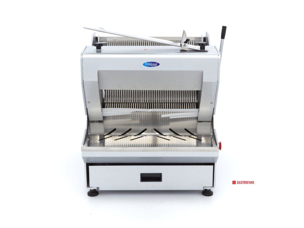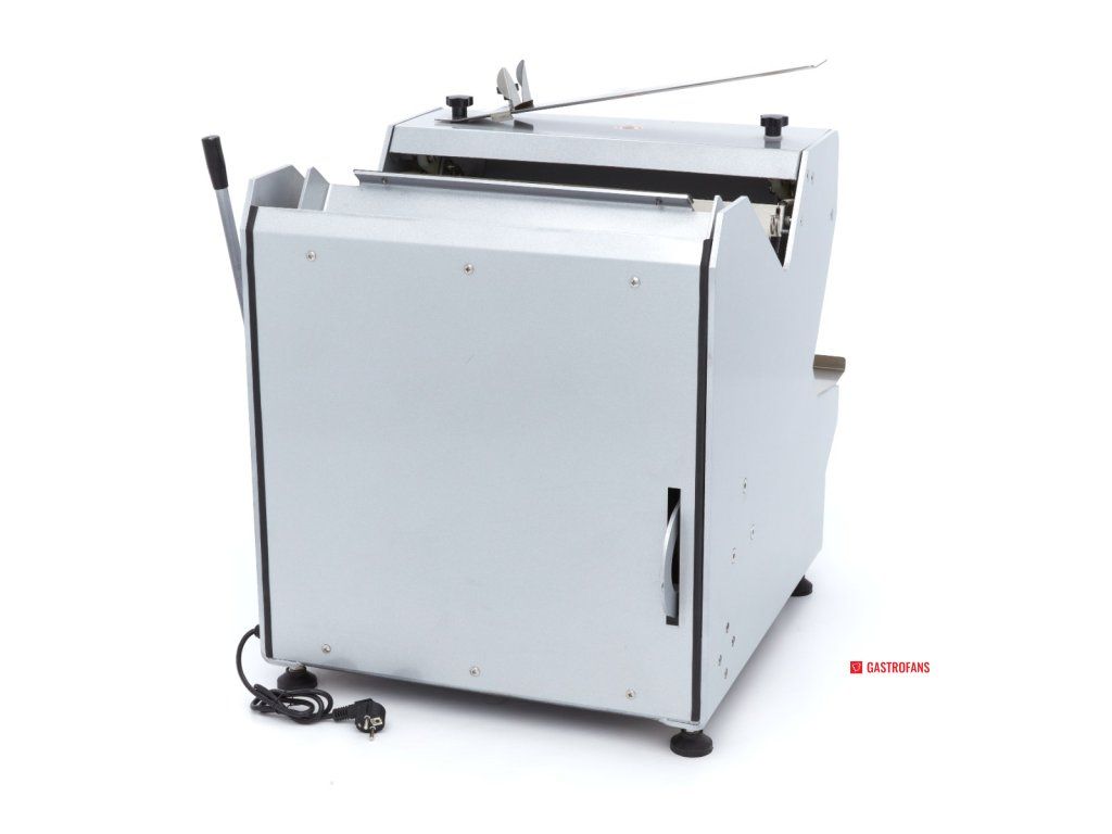 Tento Nářezový stroj na chléb je vyroben ze žáruvzdorné oceli a je určen ke krájení různých druhů chleba. Naše Nářezový stroje chleba jsou k dispozici s různými tloušťkami chleba. Tento strojek má vroubkované čepele z nerezové oceli vzdálené od sebe 13 mm. Jednoduchá obsluha Tento Nářezový stroj chleba se jednoduše používá. Nejprve přístroj zapněte pomocí tlačítka Zapnout. Chcete-li nastavit velikost tloušťky podávaného chleba, nejprve vložte chléb do přístroje. Poté zatáhněte páčku směrem k sobě, abyste chléb do strojku zasunuli. V horní části strojku se nachází přítlačná deska. Tato přítlačná deska se automaticky výškově nastaví tak, aby odpovídala výšce chleba. Chléb se nakrájí na rovnoměrně silné plátky a vyjde druhou stranou stroje ven. Nože se zastaví, jakmile je páka zatlačena úplně dopředu. Na výstupu jsou pružné klapky, které zajišťují, že volné plátky zůstanou pohromadě. Ve spodní části stroje se nachází zásobník na drobky, který lze snadno vyjmout a vyprázdnit. K balení nakrájeného chleba můžete použít kovový balicí vozík a opatřit jej plastovým nebo papírovým sáčkem na chleba. Tento Nářezový stroj chleba je vhodný nejen pro krájení běžného chleba, ale dokáže krájet i tvrdý chléb, například bagety. Čištění stroje Pro zajištění optimálního výkonu je důležité tento Nářezový stroj chleba pravidelně čistit. Začněte tím, že stroj zcela vypnete. Pomocí měkkého kartáčku na prach odstraňte případné drobky. Poté stroj vyčistěte jemným čisticím prostředkem, který je bezpečný pro potraviny. Ujistěte se, že jste stroj důkladně vysušili, abyste zabránili jakémukoli vlivu vlhkosti na chléb během krájení. Při čištění nepoužívejte abrazivní houbičky nebo ostré předměty, protože by mohly způsobit poškození stroje. Vlastnosti Vhodné pro všechny druhy chleba Pokaždé stejná tloušťka plátků Odolný a robustní stroj Včetně praktického balicího vozíku Pružné klapky pro udržení plátků pohromadě Specifikace výrobku Čistá hmotnost: 124 kg Kapacita: 33 plátků najednou, 240 bochníků za hodinu Tloušťka chleba: 13 mm plátky Velikost chleba: max. 44 cm Rozměry zařízení: Š68 x D82 x V70cm 230V / 50Hz / 1 fáze 750 Watt Vezměte prosím na vědomí: Tento přístroj je vhodný pouze pro krájení chleba, nikoliv pro krájení jiných potravin, jako jsou melouny nebo jiné tvrdé ovoce.Doplňkové parametry
