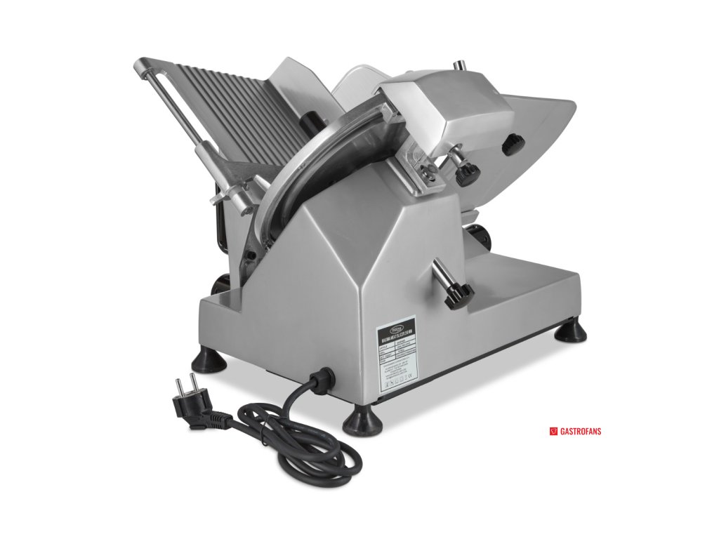 Ruční krájení velmi tenkých a rovných plátků masa vyžaduje hodně cviku. I tak často nejsou tak tenké jako u elektrického Nářezový stroje. S Nářezový strojem na maso také ušetříte spoustu času, takže zákazníci nemusí na svou objednávku dlouho čekat. Tento Nářezový stroj na maso nejenže bez námahy klouže po jakémkoli druhu masa, ale lze jej použít i ke krájení chleba a zeleniny. Pokud si k němu objednáte teflonovou čepel, můžete s ní snadno krájet i plátky sýra. Čepel z tvrzené nerezové oceli má průměr 25 cm a díky svému šikmému uspořádání krájí rychle a hladce. Libovolná tloušťka řezu Některá masa se krájejí na tloušťku, zatímco například šunku nebo carpaccio je nejlepší krájet na tenké plátky. Proto můžete na tomto Nářezový stroji měnit tloušťku řezu přesně na šířku, kterou potřebujete. Lze krájet plátky od 1 do 12 mm. Bezpečná práce s kuchyňskými nástroji, jako je tento, je v profesionální kuchyni důležitá. Motor má zabudovanou bezpečnostní funkci a díky jeho konstrukci jsou ruce v dostatečné vzdálenosti od čepele. Při častém používání se může čepel otupit. Proto je Nářezový stroj vybaven nástavcem pro ostření. Jakmile nástavcem otočíte, čepele projdou brusnými kameny a nůž bude opět ostrý. Po nabroušení je vhodné Nářezový stroj vyčistit, aby se jemná zrnka z kamenů nedostala do potravin. Velmi snadné použití Tento profesionální Nářezový stroj na maso se velmi snadno používá. Na boční straně najdete tlačítko zapnutí a vypnutí. Páku můžete ovládat jednou rukou, zatímco druhou rukou chytáte maso. Vzhledem k tomu, že pracujete s potravinami, je třeba Nářezový stroj po každém použití řádně vyčistit a vydezinfikovat. Krájecí deska a nůž jsou odnímatelné a lze je čistit mýdlovou vodou a jemným mycím prostředkem. K čištění zbytku spotřebiče použijte vlhkou houbičku a trochu mycího prostředku. Před použitím vše opláchněte a nechte části dobře vyschnout. Pro zajištění stability při používání stojí Nářezový stroj masa na čtyřech gumových nožičkách Profesionální Nářezový stroj pro gastronomii Robustní hliníková konstrukce Tvrzená nerezová dutě broušená čepel Včetně nástavce na broušení Šikmé uspořádání pro snadné krájení Vhodný pro sýry s volitelným teflonovým nožem Velmi tichý stroj Bezpečnost na motoru Stojí na čtyřech gumových nožkách Snadno se čistí 230 V/50 Hz/1 fáze 150 W Čistá hmotnost: 14,3 kg Rozměry: Š47 x D28 x V38cm Rozměry sklíčka: B18 x D23cm Maximální výška sečení: 18 cm Nastavitelná tloušťka řezu 1-12mm Rychlost otáčení nože: 300 otáček za minutu Průměr nože: 1,5 mm: Ø 25cm 230V/50Hz/1Fáze 150WDoplňkové parametry