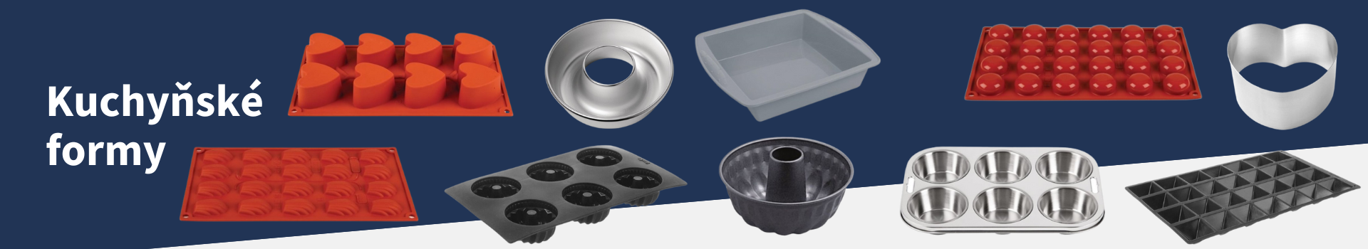 V naší nabídce naleznete kuchyňské formy pro každý druh pečení. Zda se chystáte péct chléb, koláč nebo bábovku s naším vybavením dostanete profesionální výsledky. Při přípravě toho nejchutnějšího těsta se vám budou hodit stěrky, špachtle i pečící papír. Ke zdobení zákusků poslouží cukrářské karty, zdobící láhve, zdobící špičky, štětce a malovačky.