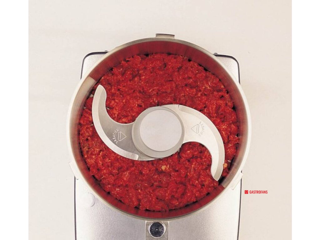 - nůž s rovným ostřím – vhodný pro přípravu emulzí, pěn, pomazánek, pro jemné i hrubé rozsekání masa a zeleniny