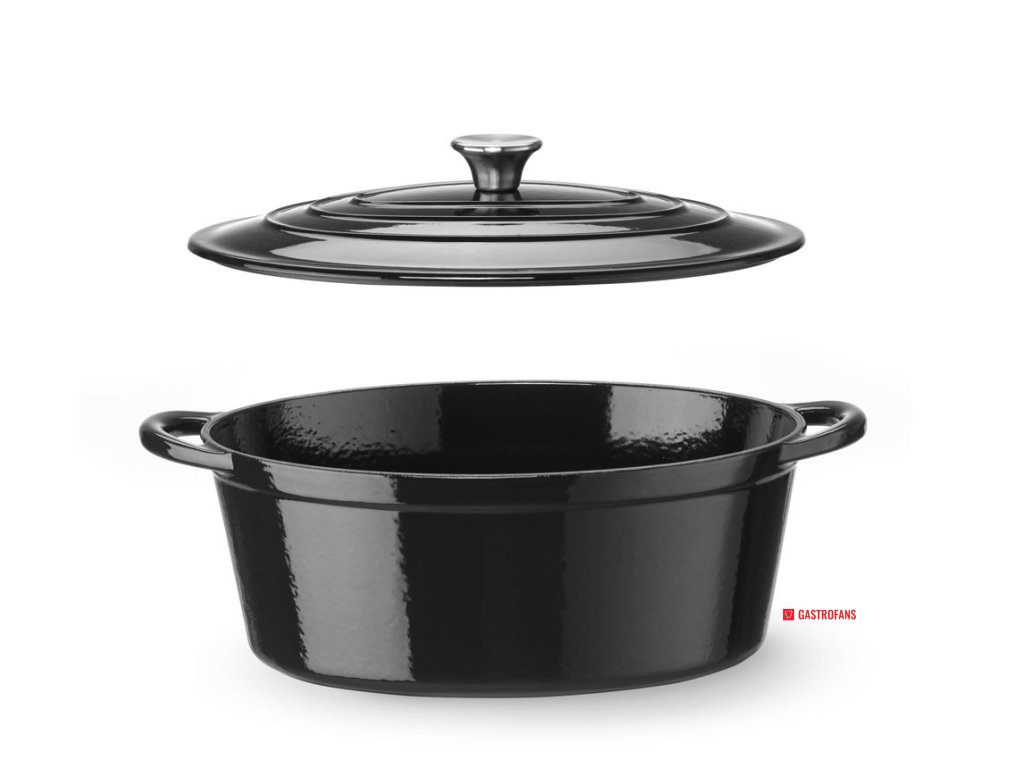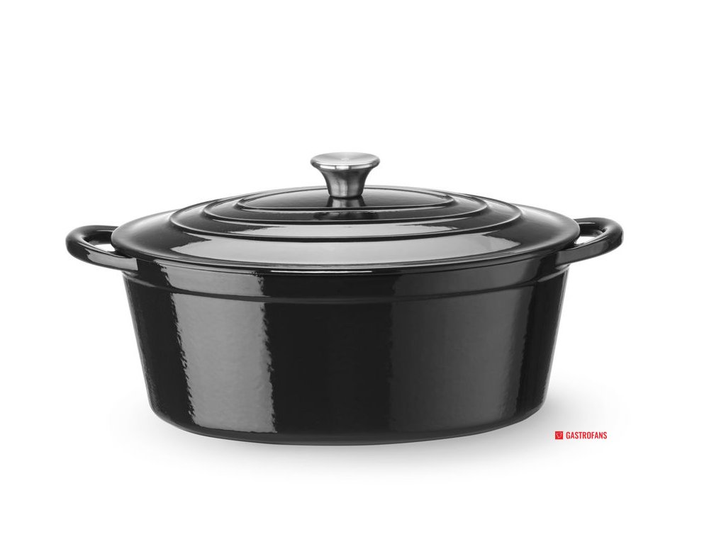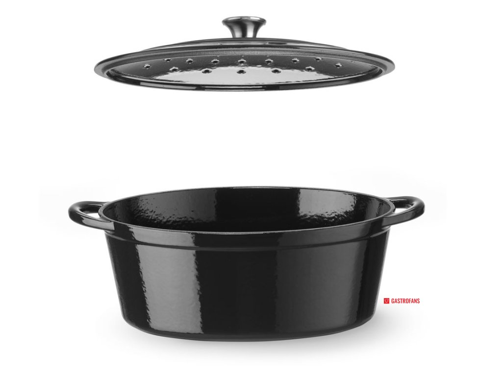 Litinový kastrol smaltovaný, HENDI, 6,88L, Černá, 405x255x(H)134mm Hendi
