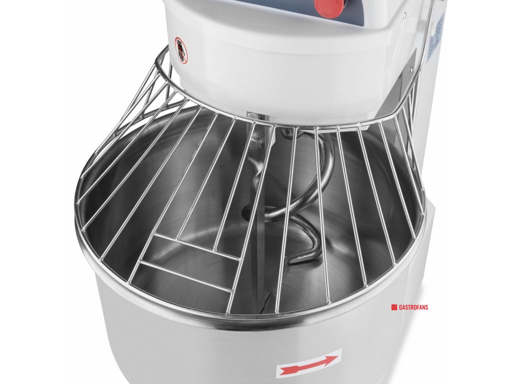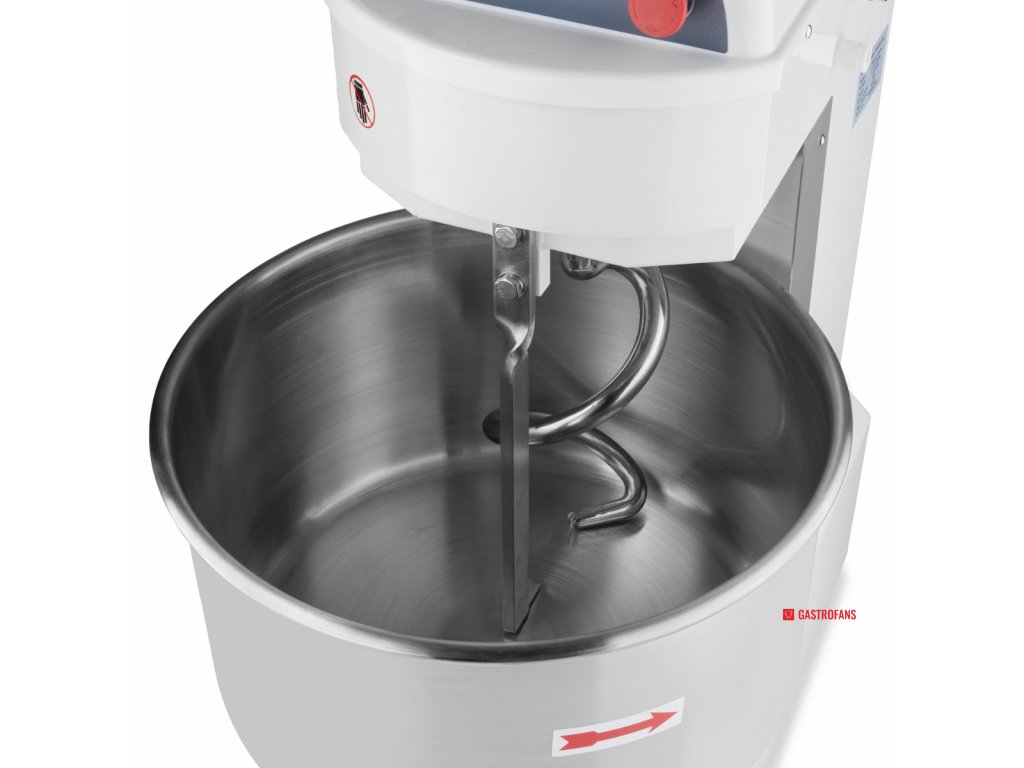 Tento výkonný mixér na těsto s 50litrovou míchací mísou je vítaným doplňkem každé profesionální kuchyně. Hnětení až 32 kg těsta je s tímto přístrojem velmi snadné. Protože se hnětací hák i míchací mísa otáčejí kolem vlastní osy, suroviny se opravdu dobře promíchají a vytvoří dokonale hladké těsto připravené na pečení chleba a pizzy. Tento míchač těsta si poradí až s 20 kg mouky a minimální množství těsta, které můžete uhníst, je 15 kg.