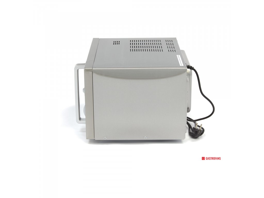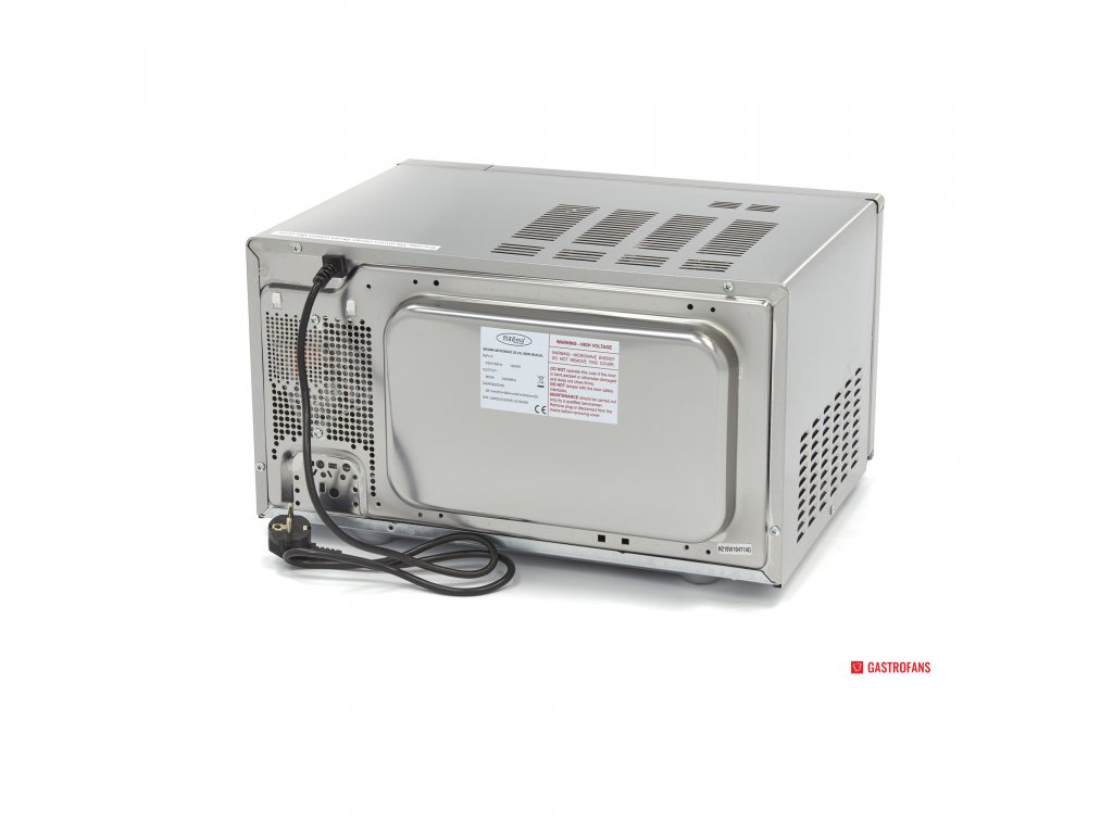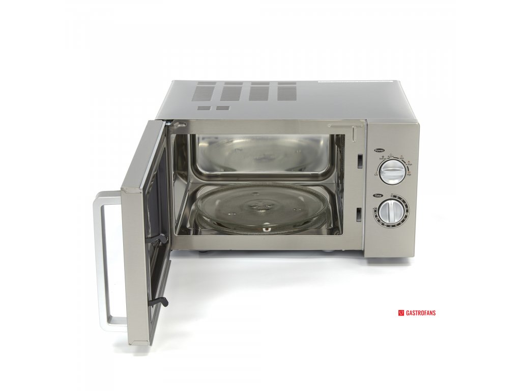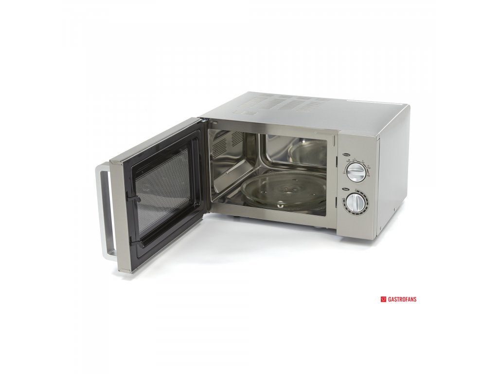 Tato mikrovlnná trouba je vhodná pro komerční kuchyně, profesionální gastronomické provozy i domácí kuchyně. Poloprofesionální mikrovlnná trouba má průhledná dvířka bez zámku. To má tu výhodu, že se dvířka snadno otevírají a zavírají. Vnitřní komora je vybavena osvětlením, abyste viděli na produkty v mikrovlnné troubě. Ve vnitřní komoře je na dně umístěn skleněný otočný talíř. K ovládání mikrovlnné trouby slouží analogový ovládací panel s chromovanými tlačítky.