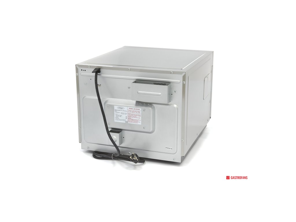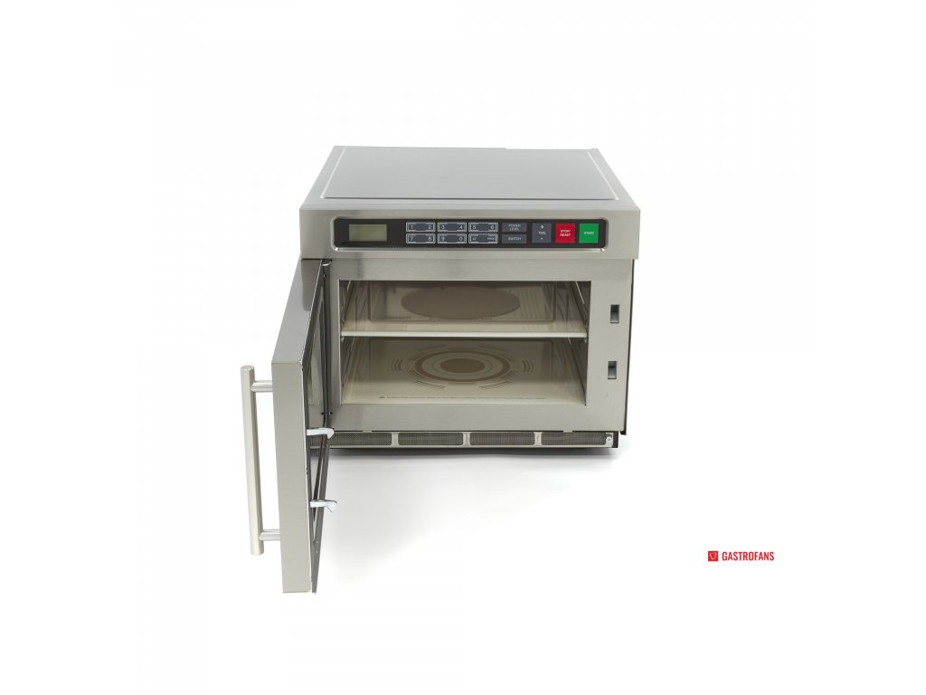 Tato mikrovlnná trouba má přehledný ovládací panel s digitálním časovačem. Velikost talířů, které jsou vhodné pro tuto mikrovlnnou troubu, jsou talíře o průměru 36 cm nebo méně. Kromě talířů je mikrovlnná trouba vhodná také pro (plastové) GN mísy o velikosti 1/2 GN a menší. Dvířka jsou průhledná a bez zámku, takže se snadno otevírají a zavírají. Vnitřní komora je také vybavena osvětlením, takže můžete sledovat průběh přípravy pokrmů. Ohřívací tělesa jsou umístěna v horní a spodní části mikrovlnné trouby. Tato mikrovlnná trouba je vhodná pro velkokuchyňské a gastronomické použití.