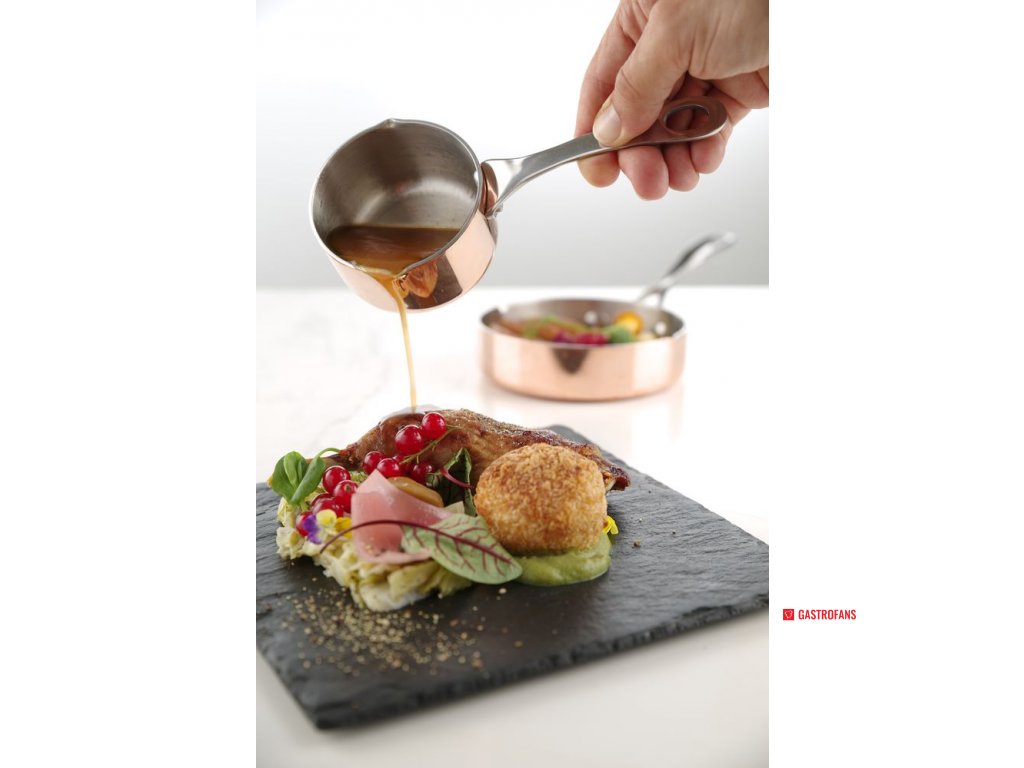 Vyroben z 2,5 mm tenkého 3vrstvého materiálu (měď, hliník, nerezová ocel). Rukojeť připevněna nýty.