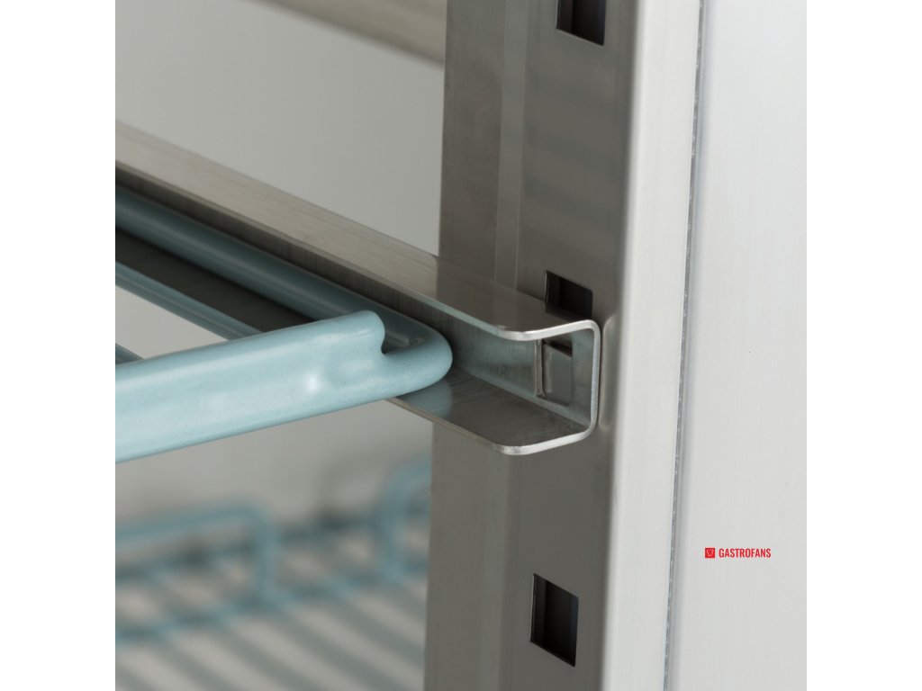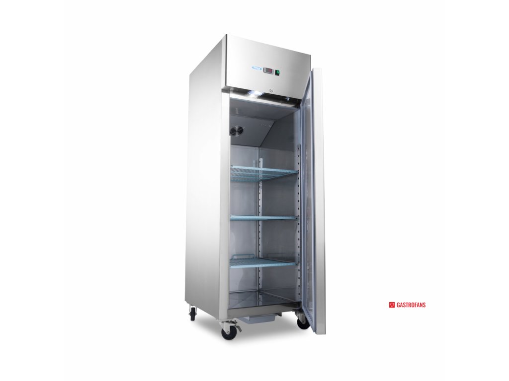Tato luxusní a robustní mraznička je ideální pro použití v každé profesionální gastronomické kuchyni. Díky třem výškově nastavitelným policím a objemu 600 litrů můžete snadno zmrazit velké porce potravin. Na rošty se také ideálně vejdou zásobníky 2/1 GN. Kromě toho je tato mraznička vybavena samozavíracími dveřmi s antibakteriální gumou, vestavěným energeticky úsporným LED osvětlením a zámkem se dvěma klíči.