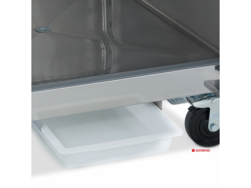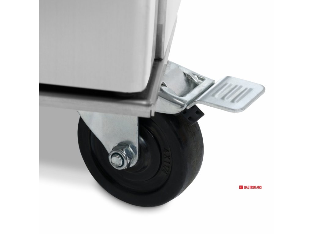 Čištění této profesionální mrazničky je snadnou záležitostí. Skříň a vnitřní prostor jsou vyrobeny z nerezové oceli. Před čištěním je třeba mrazničku nejprve odmrazit. Vyjměte z mrazničky všechny předměty a odpojte napájecí kabel. Poté použijte mírně navlhčený hadřík a jemný čisticí prostředek a důkladně vyčistěte všechny části. Před dalším použitím mrazničky vše osušte měkkým hadříkem. Díky čtyřem kolečkům, z nichž dvě mají brzdu, se mraznička snadno pohybuje po kuchyni.