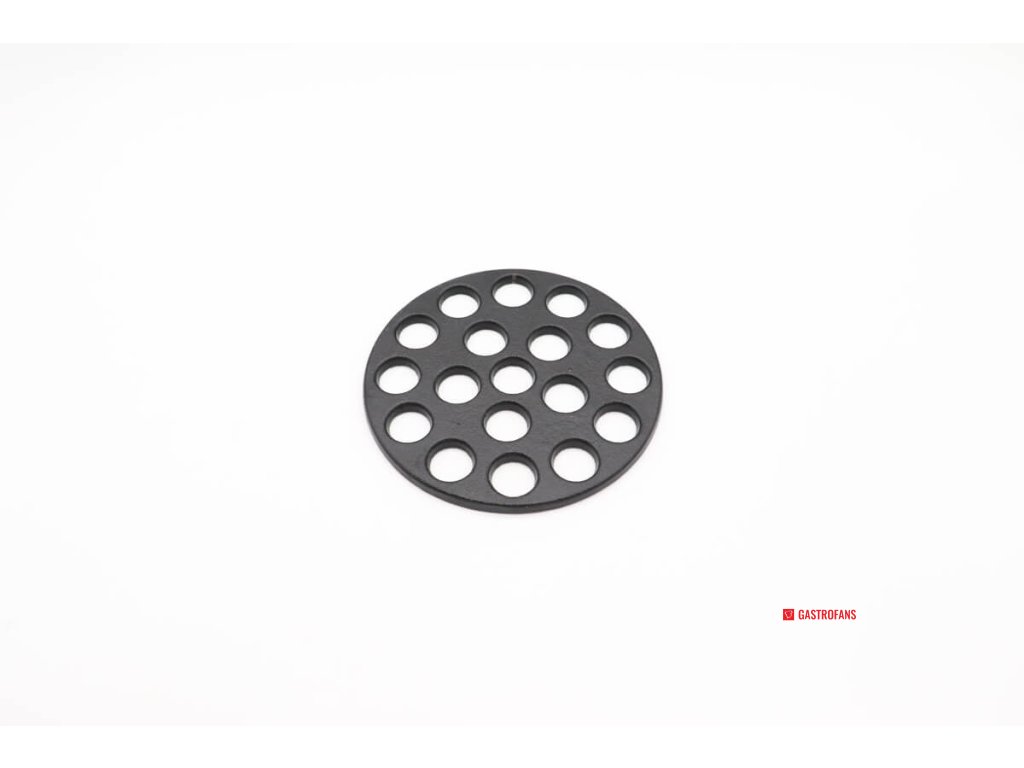 Litinový rošt na dřevěné uhlí se nachází na dně keramického grilu Kamado. Uhlí leží na mřížce na dřevěné uhlí a otvory v mřížce zajišťují dobrou cirkulaci vzduchu. Mřížka na dřevěné uhlí se standardně dodává s grilem, ale po nějaké době může být nutné mřížku vyměnit.