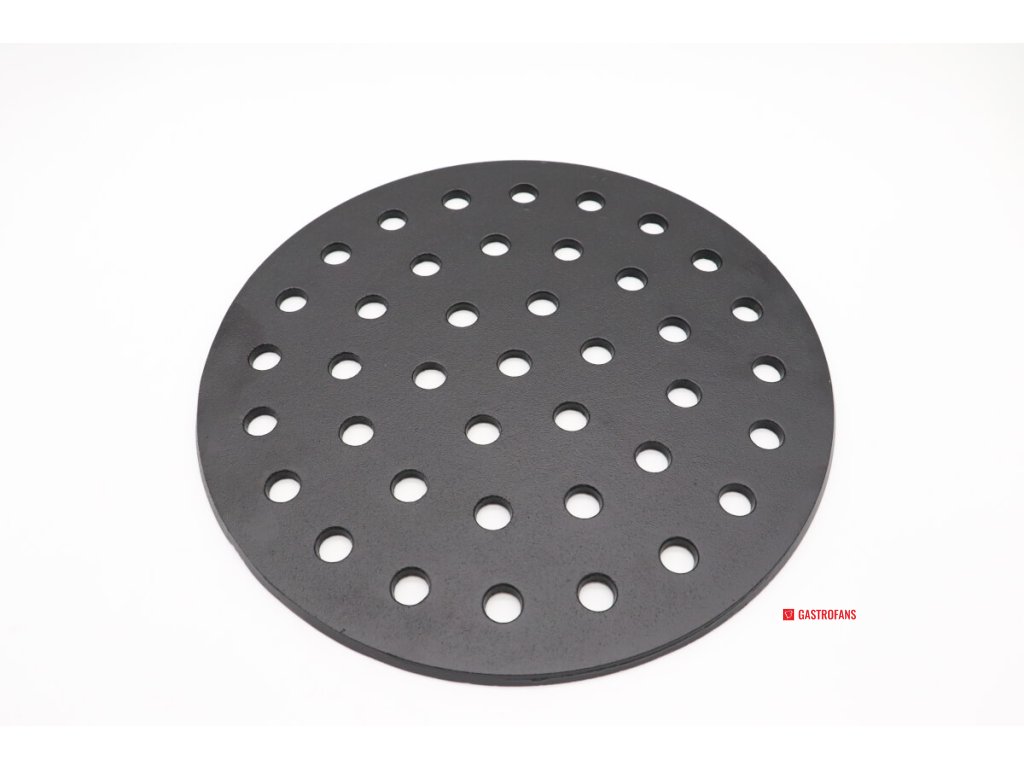 Litinový rošt na dřevěné uhlí se nachází na dně keramického ohniště Kamado. Uhlí leží na mřížce na dřevěné uhlí. Otvory v mřížce zajišťují dobrou cirkulaci vzduchu.
