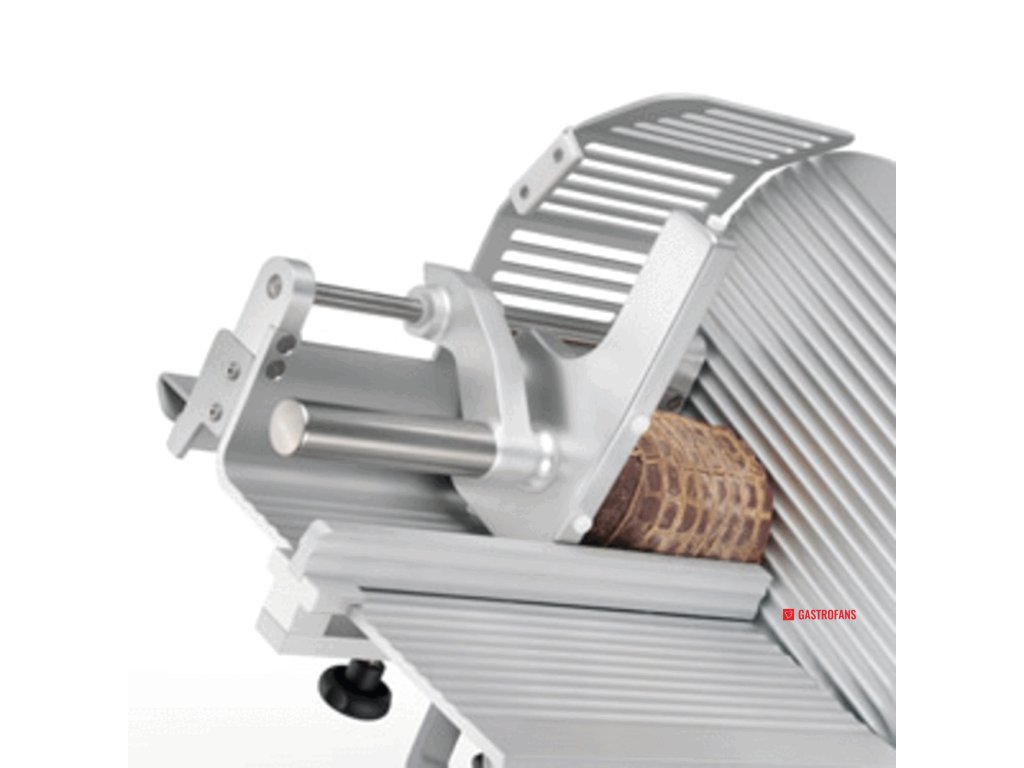 - model je vybaven automatickým pojezdem, který umožňuje automatické krájení upevněné suroviny bez nutnosti manuálního posuvu pojezdového stolu obsluhou, nářezový stroj tak automaticky krájí bez nutnosti zásahu obsluhy v průběhu krájení
